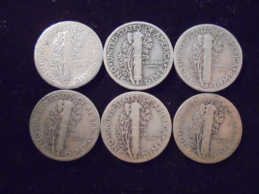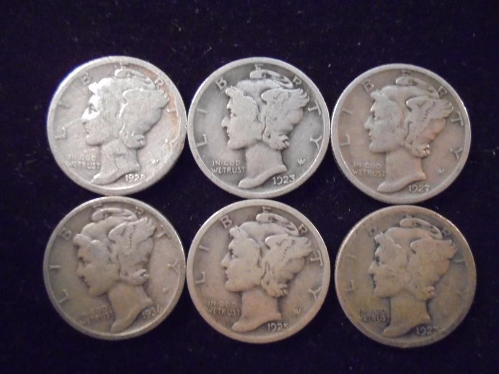 6 ASSORTED 1920'S & 30'S MERCURY DIMES