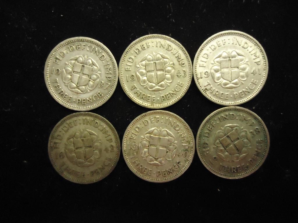 6 ASSORTED 1937-43 GREAT BRITAIN SILVER 3 PENCE