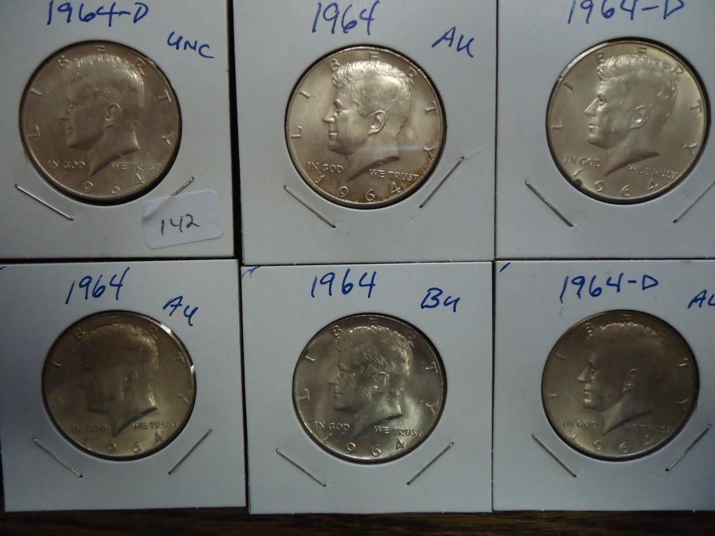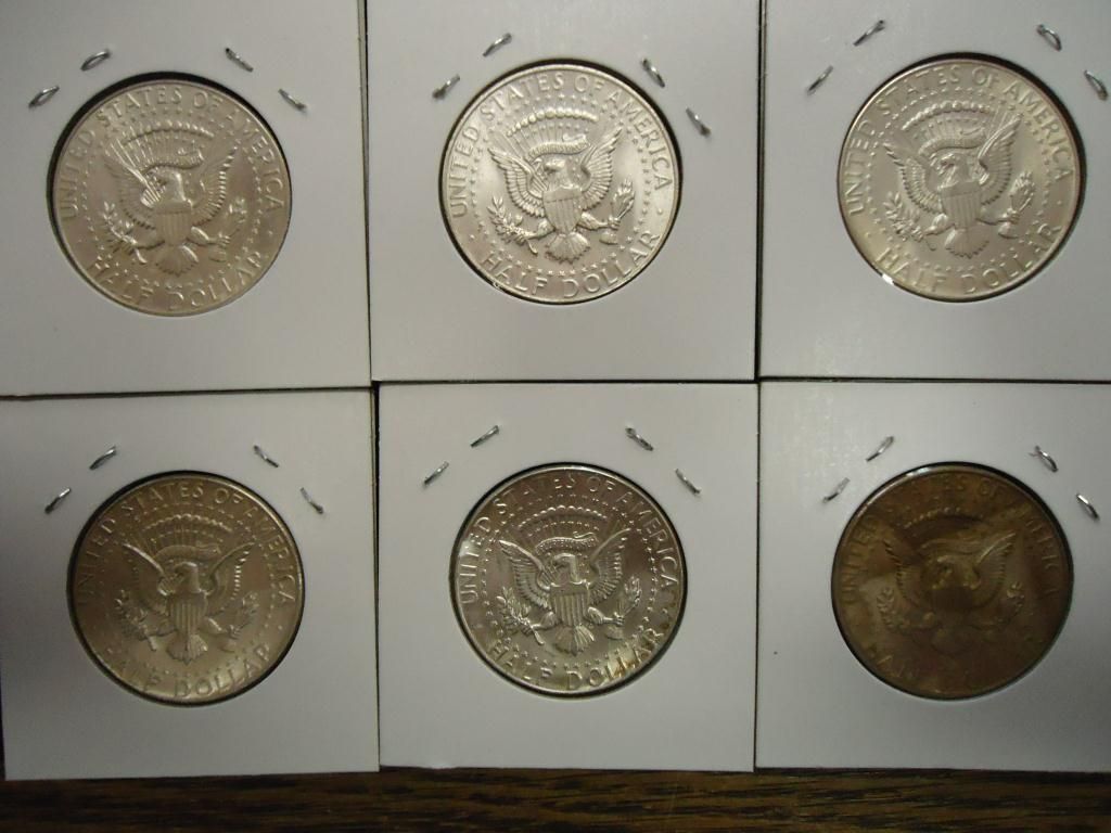 6 ASSORTED 1964 90% SILVER KENNEDY HALF DOLLARS