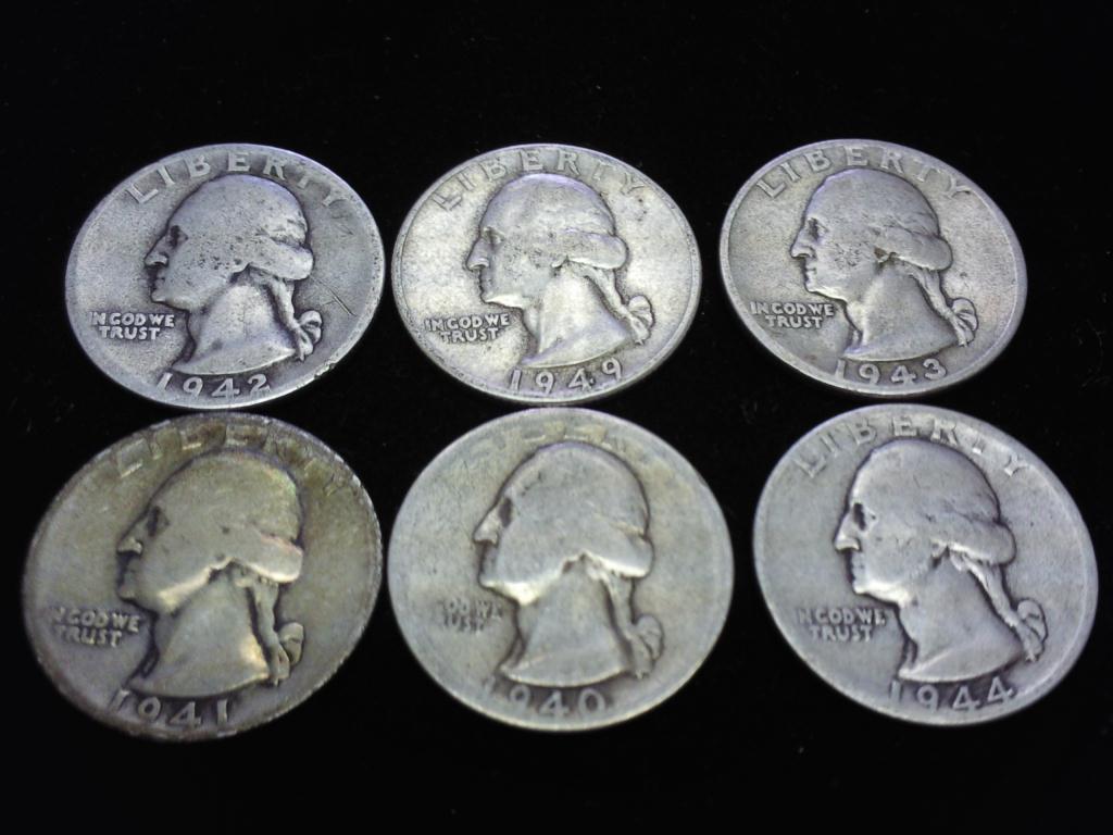 6-ASSORTED 40'S WASHINGTON SILVER QUARTERS