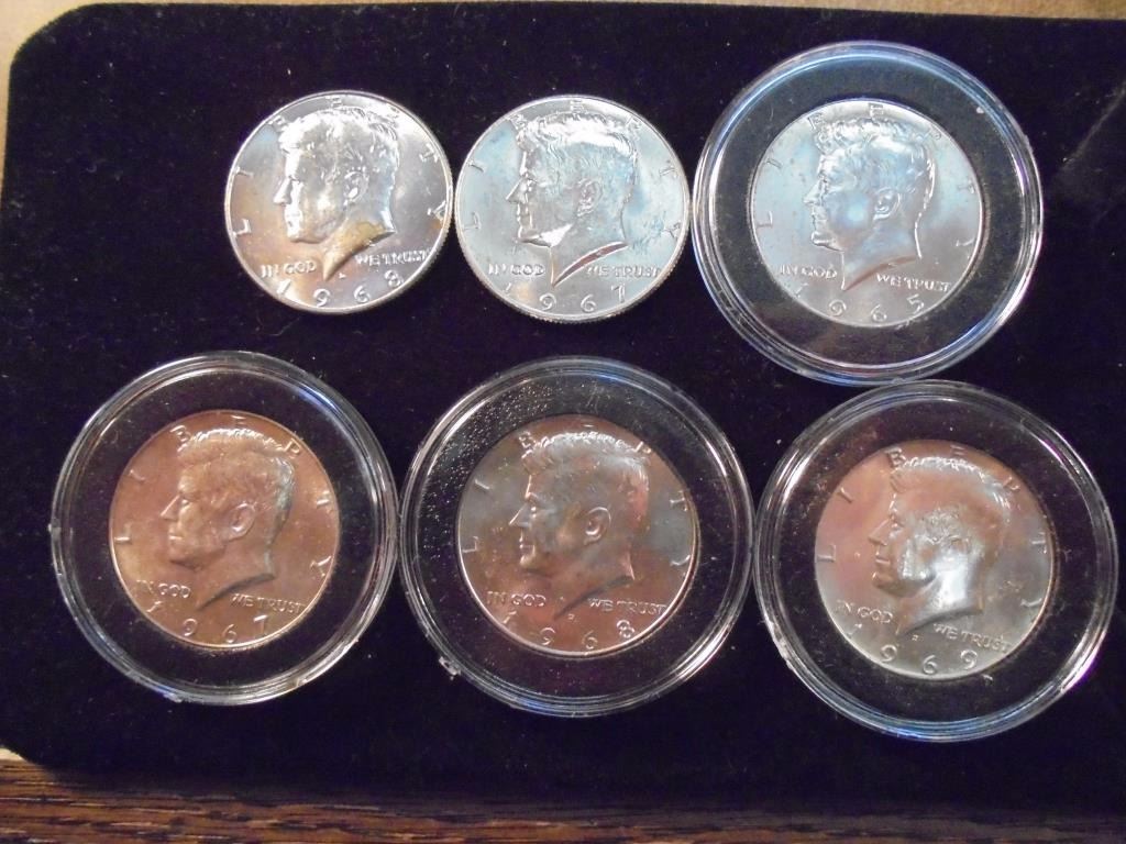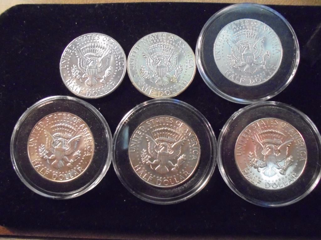 6 ASSORTED 40% SILVER JOHN F. KENNEDY HALVES UNC'S