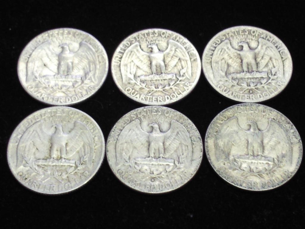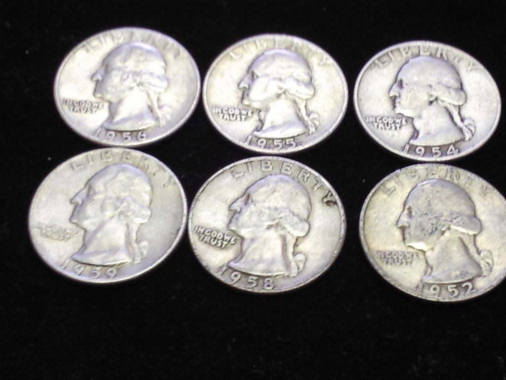 6 ASSORTED 50'S WASHINGTON SILVER QUARTERS