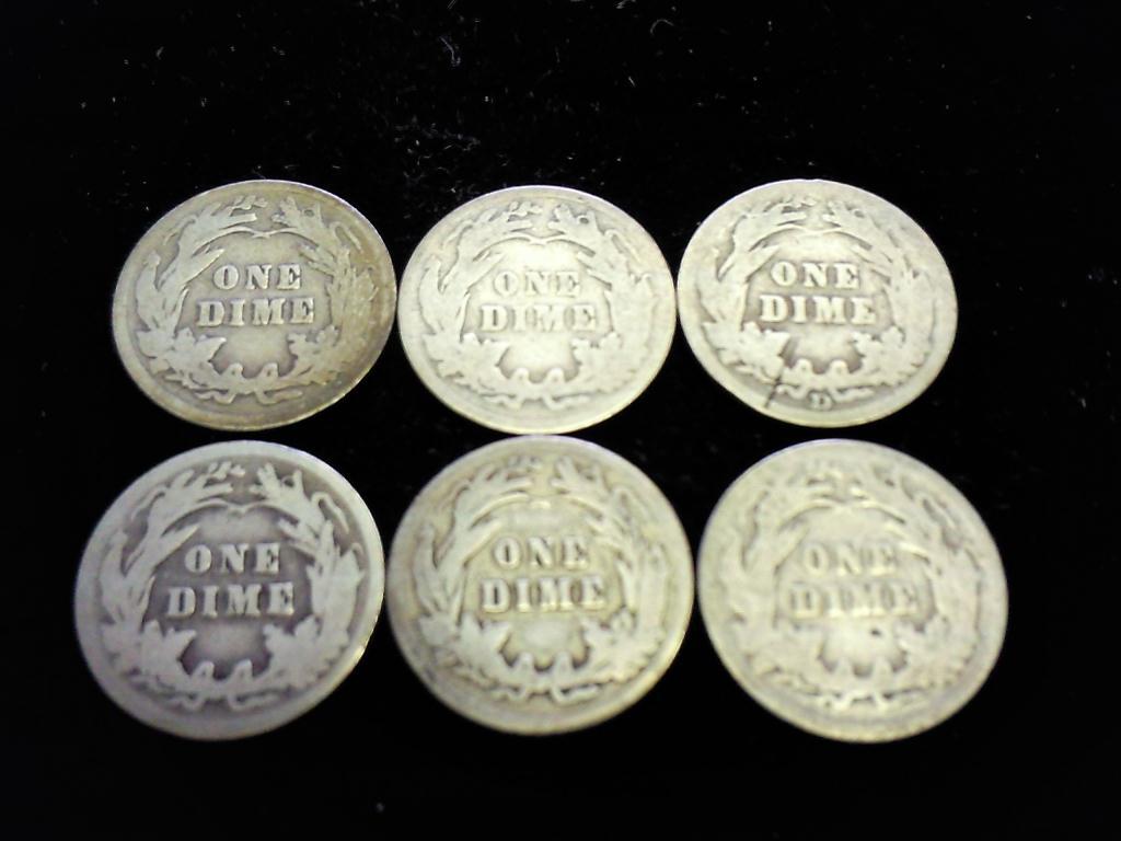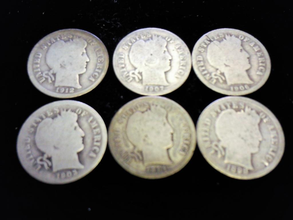 6 ASSORTED BARBER DIMES