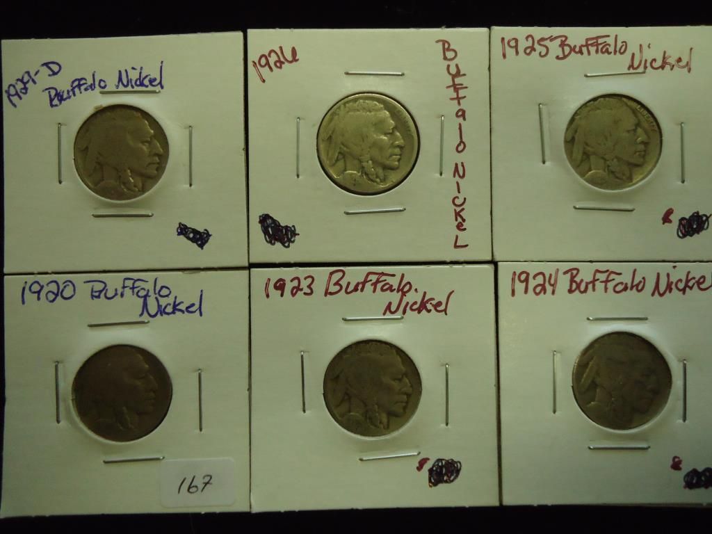 6 ASSORTED BUFFALO NICKELS 1920'S