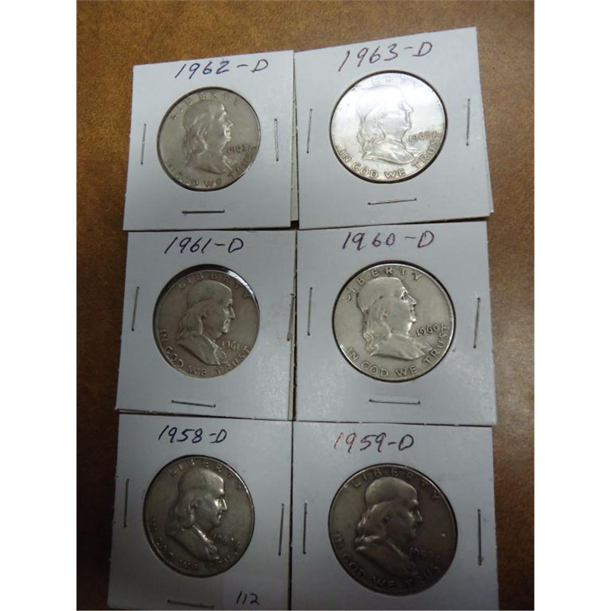 6 ASSORTED FRANKLIN HALF DOLLARS