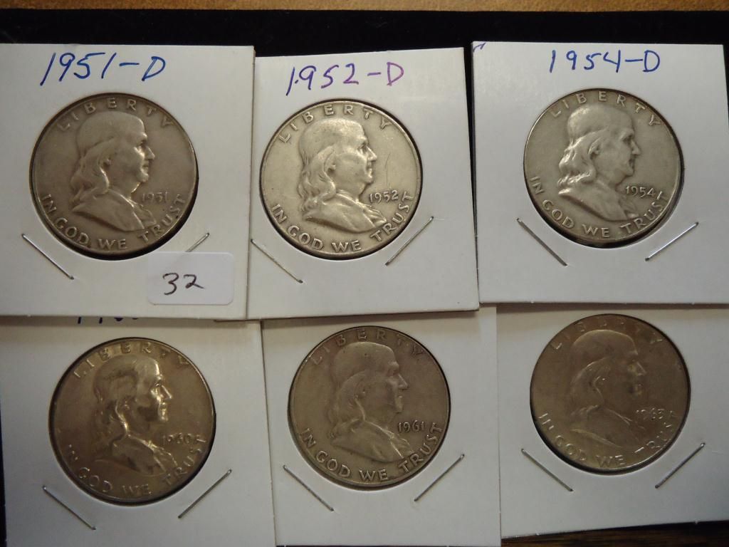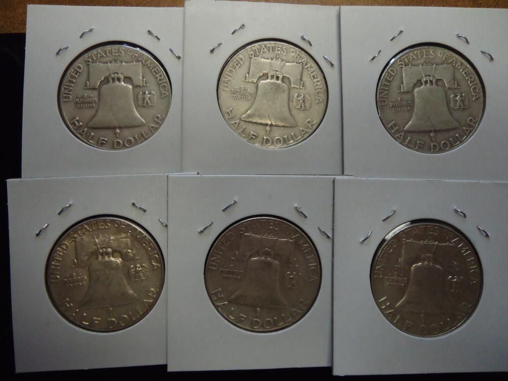 6 ASSORTED FRANKLIN HALF DOLLARS