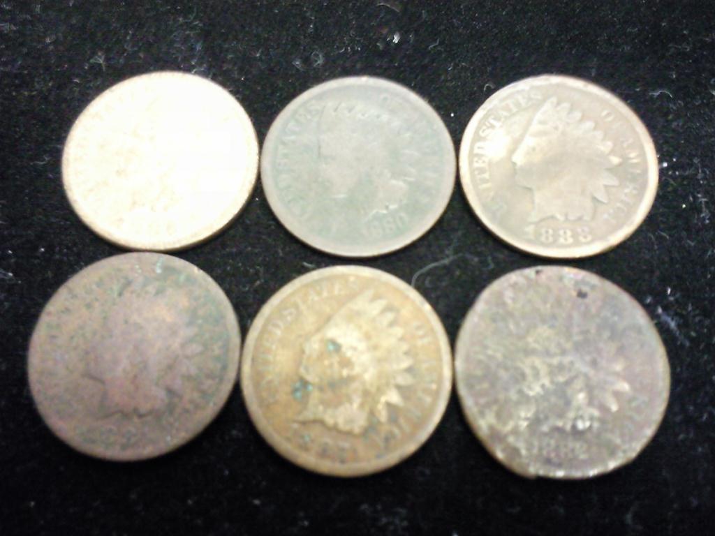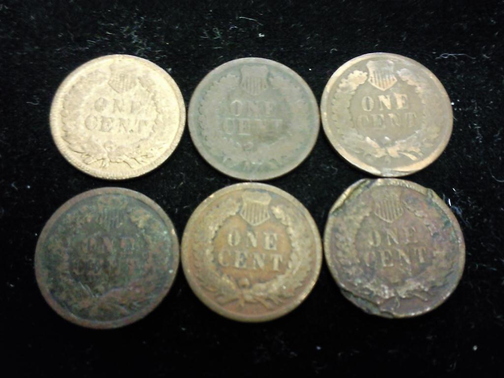 6 ASSORTED INDIAN HEAD CENTS TOUGH SHAPE