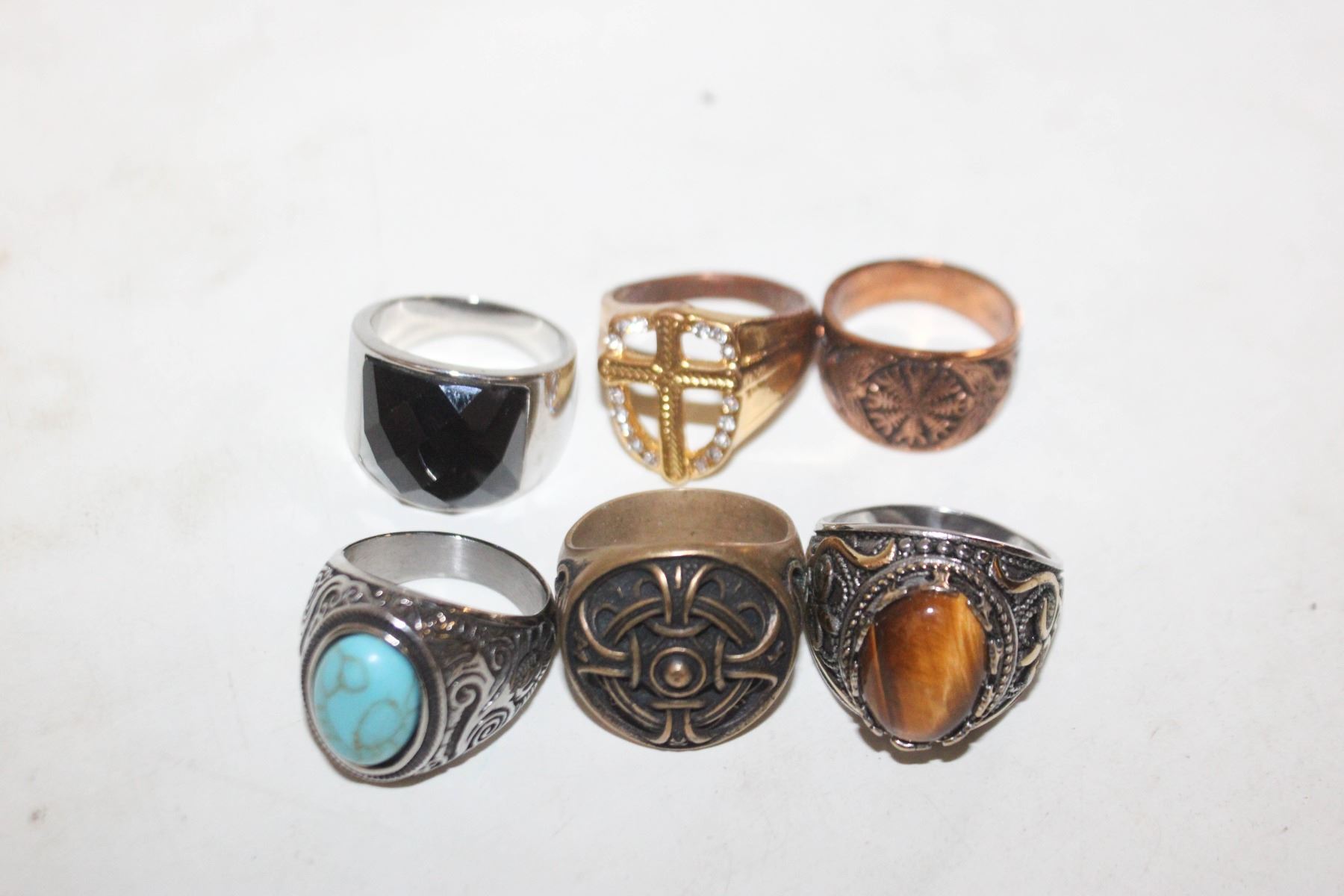 (6) ASSORTED MENS ESTATE RINGS (REPLICAS)