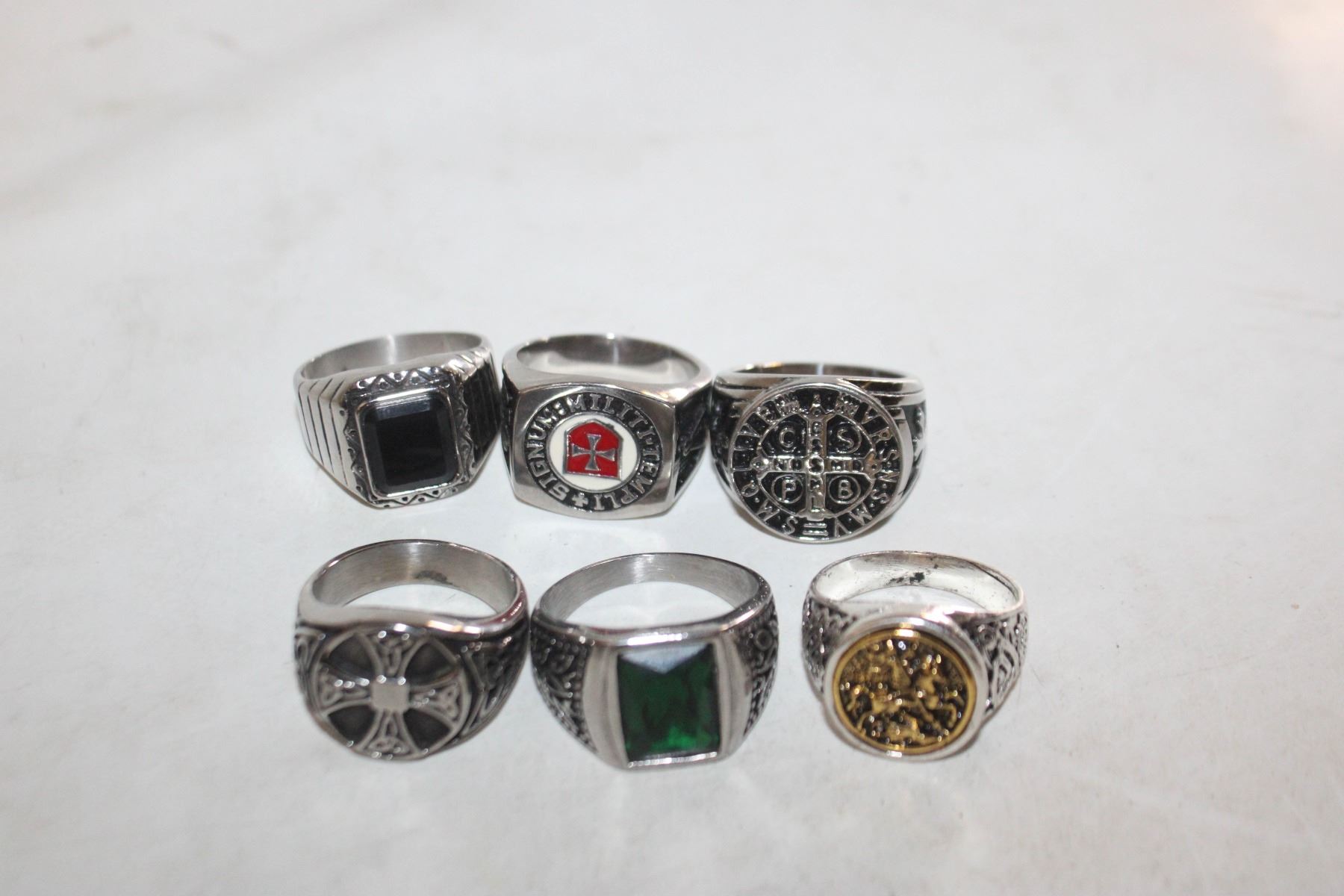 (6) ASSORTED MENS ESTATE RINGS (REPLICAS)