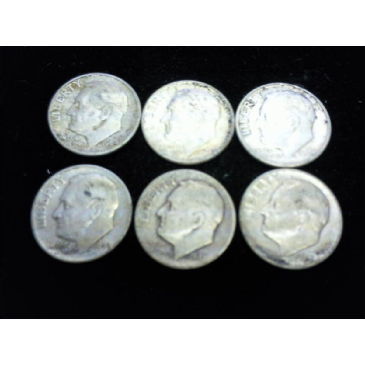 6 ASSORTED SILVER ROOSEVELT DIMES
