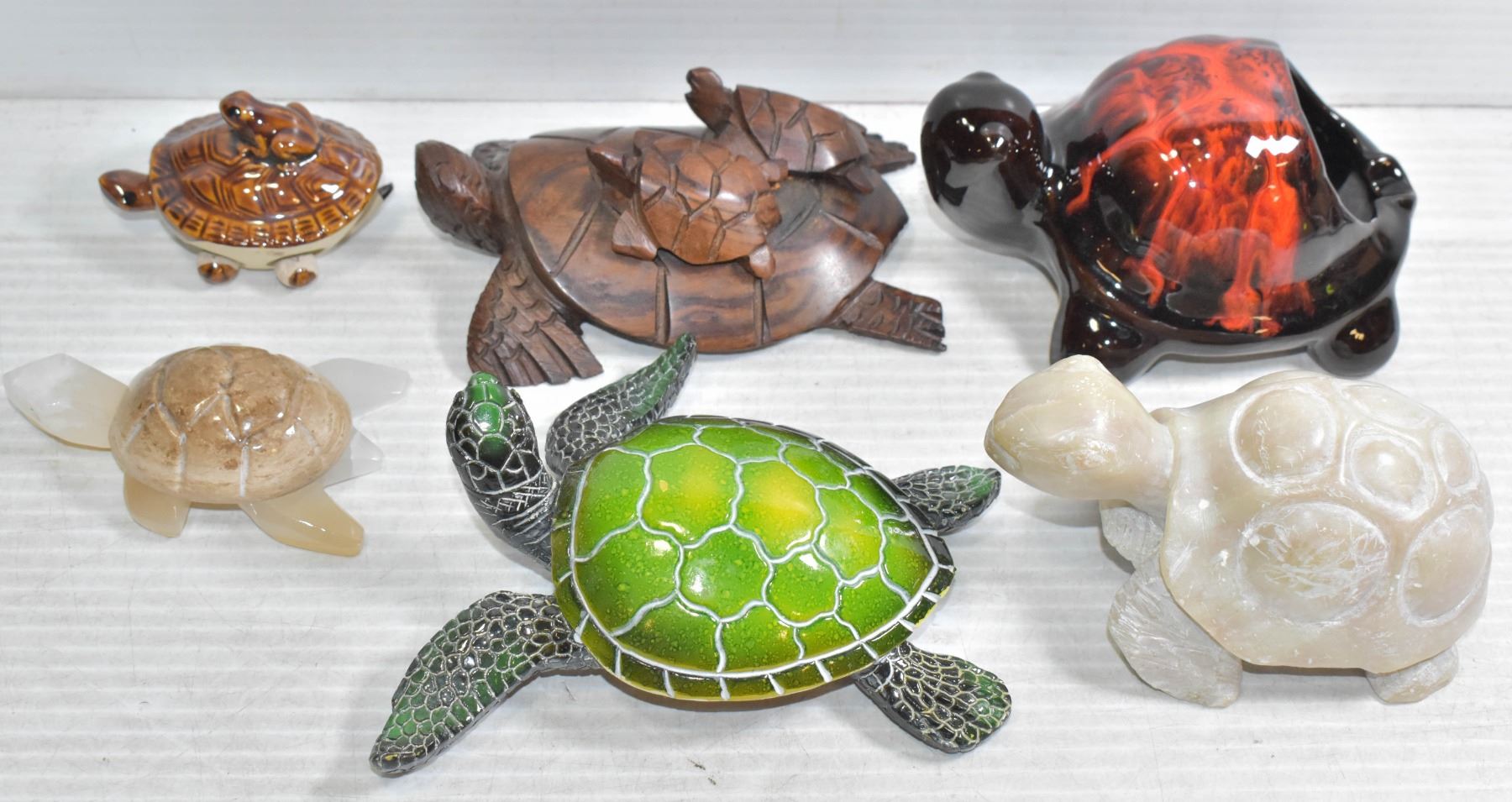 6 ASSORTED TURTLES STONE, WOOD , CERAMIC