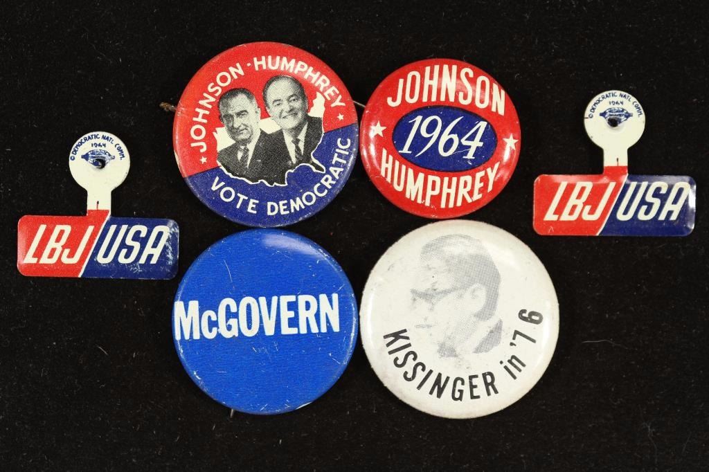 6 ASSORTED VINTAGE POLITICAL BUTTONS-PIN BACKS