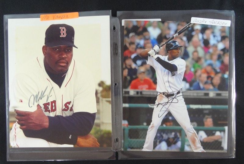 PLUS US MAIL STAMPS "LEGENDS OF BASEBALL" FACE VALUE $6.60, GREAT COLLECTION. AUTOGRAPHS ARE AUSTIN JACKSON, MO VAUGHN, BARRY LARKIN, REGGIE JACKSON, JEROME WILLIAMS, GOOSE GOSSAGE, EST $90-$120