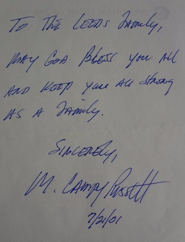 6 - AUTOGRAPHED LETTERS - ANDY CAREY, M.C. RUSSELL, DOUG PORTER, RICK BECK