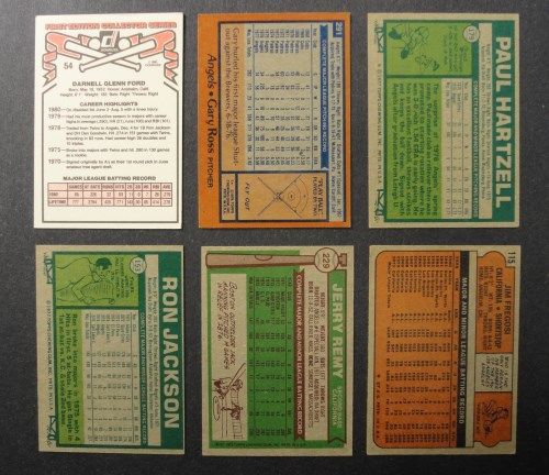 Jim Fregosi, Jerry Remy, Ron Jackson, Paul Hartzell, Gary Ross & Dan Ford. Mostly EM-NM. Est Value $20.00 - $25.00.