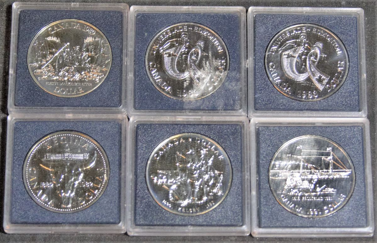 6 Assorted Canadian Silver Brilliant Uncirculated $1 Dollar Coins - .375 Oz ASW Each - Years Include 1983, 1982, 1989, 1990, 1991