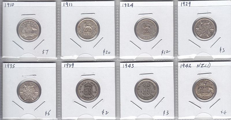 6 Assorted 6-Pence Silver Coins - Great Britain & Australia