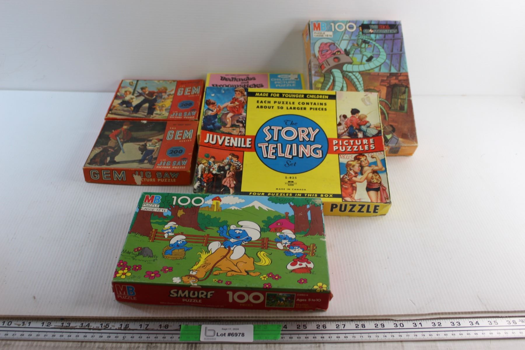 (6) Assorted Jigsaw Puzzles - Smurf, Ghostbusters and Story Telling, 200 and 100pc