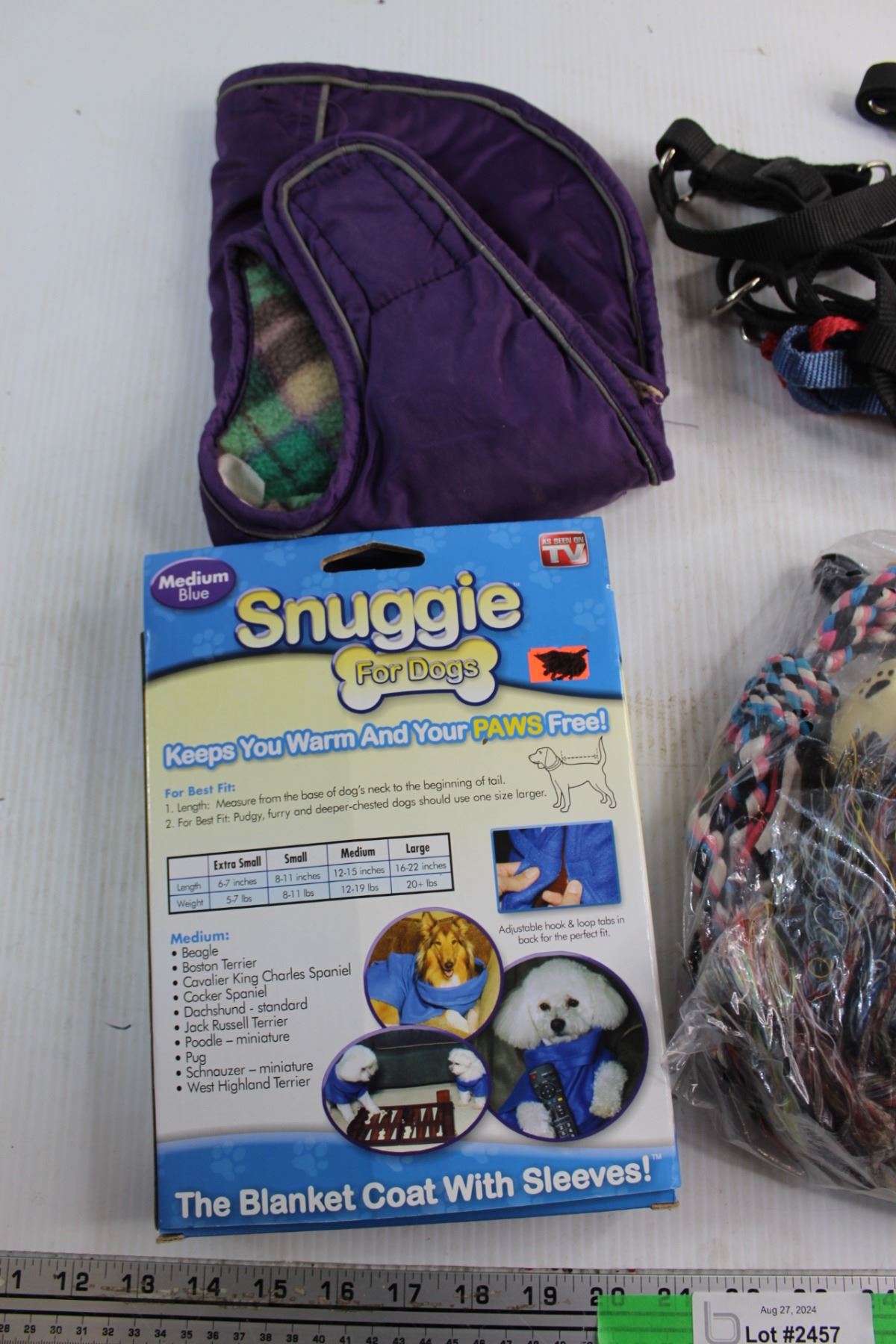 (6) Assorted Leashes, Snuggie Blanket Coat with Sleeves and Assorted Items