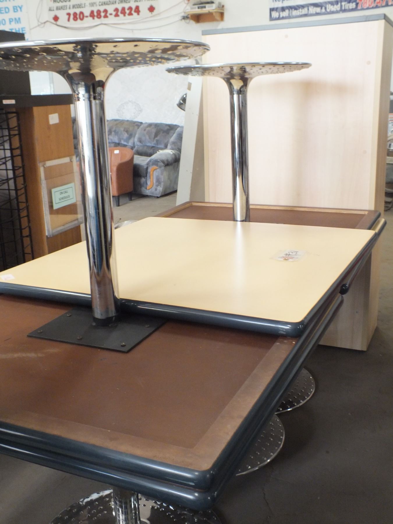 6 Assorted Tables w/ Metal Bases...used