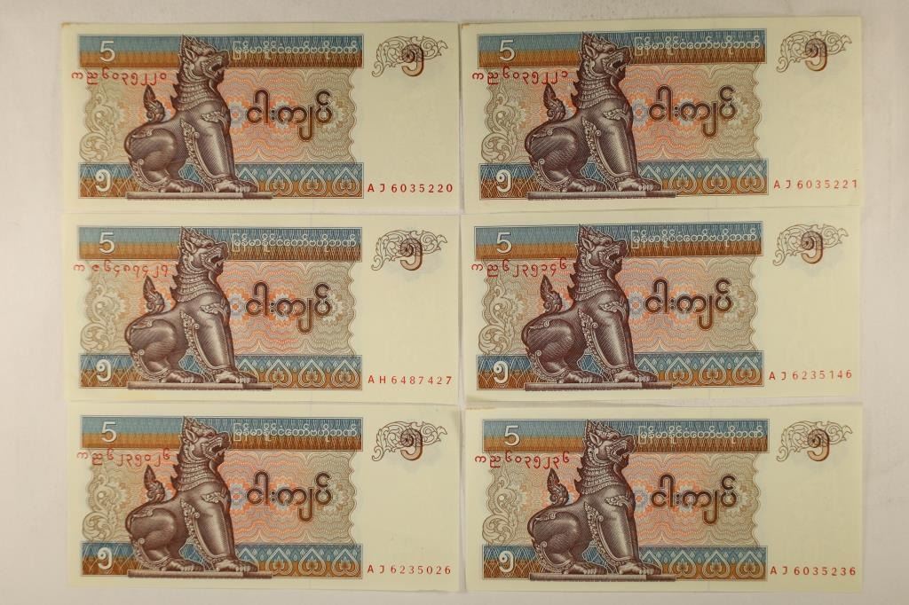 SERIAL NUMBERS, 5 ARE CRISP UNC, 1-IS CRISP AU
