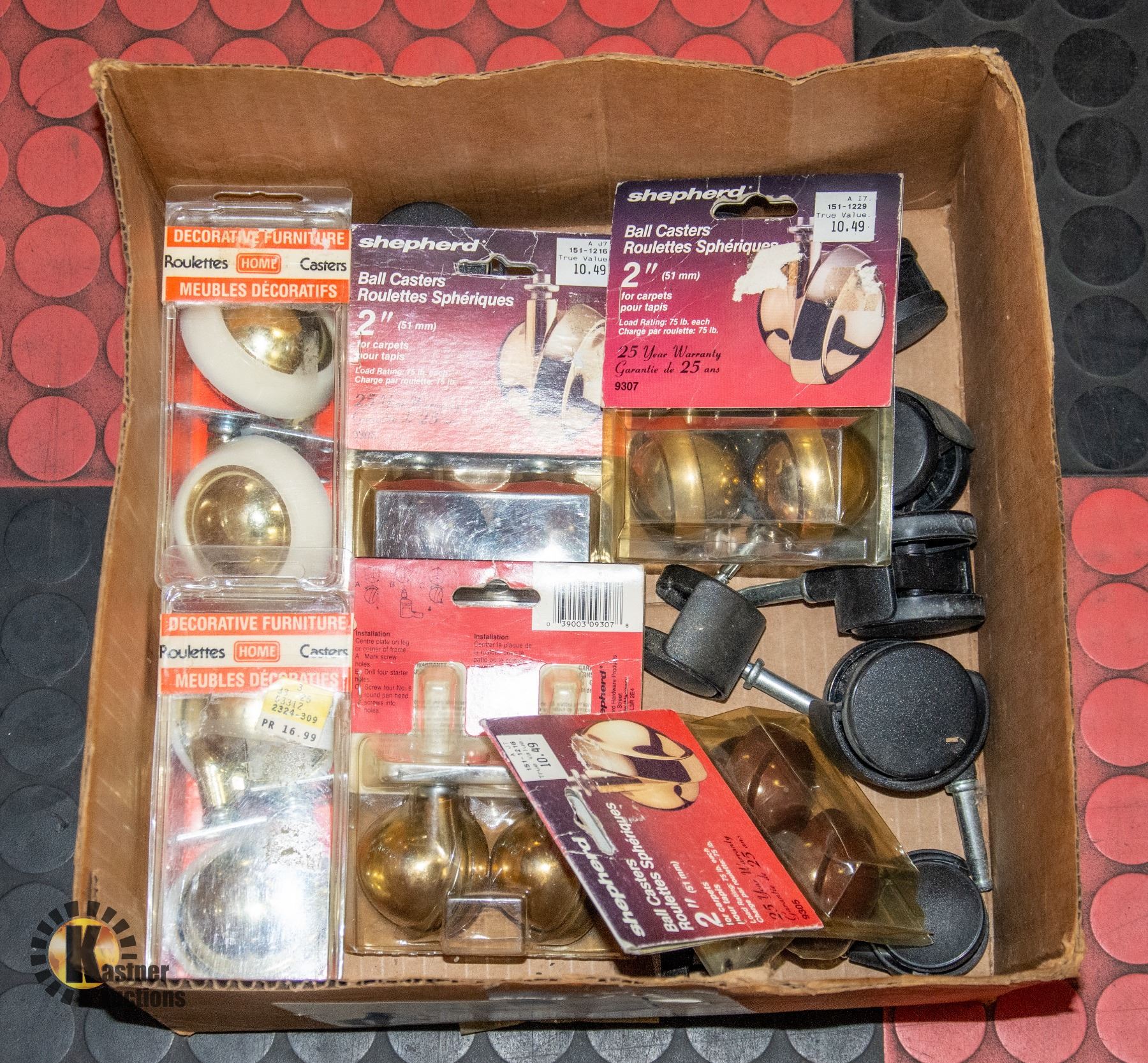 6 BOXES OF NEW CASTORS AND USED WHEELS