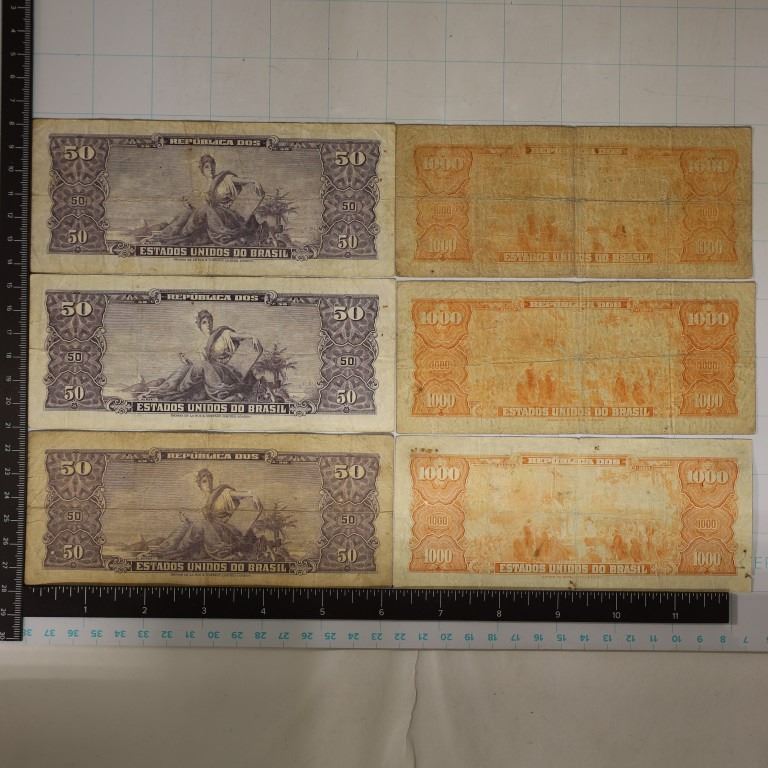 6-BRASIL BILLS: 3-50 CRUZEIROS & 3-1000 CRUZEIROS