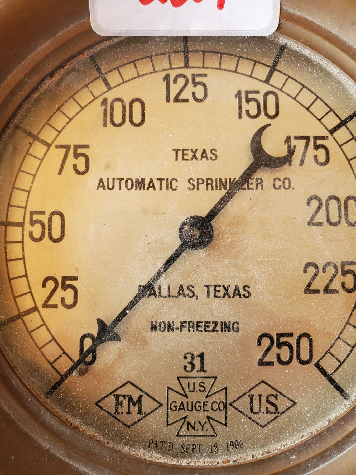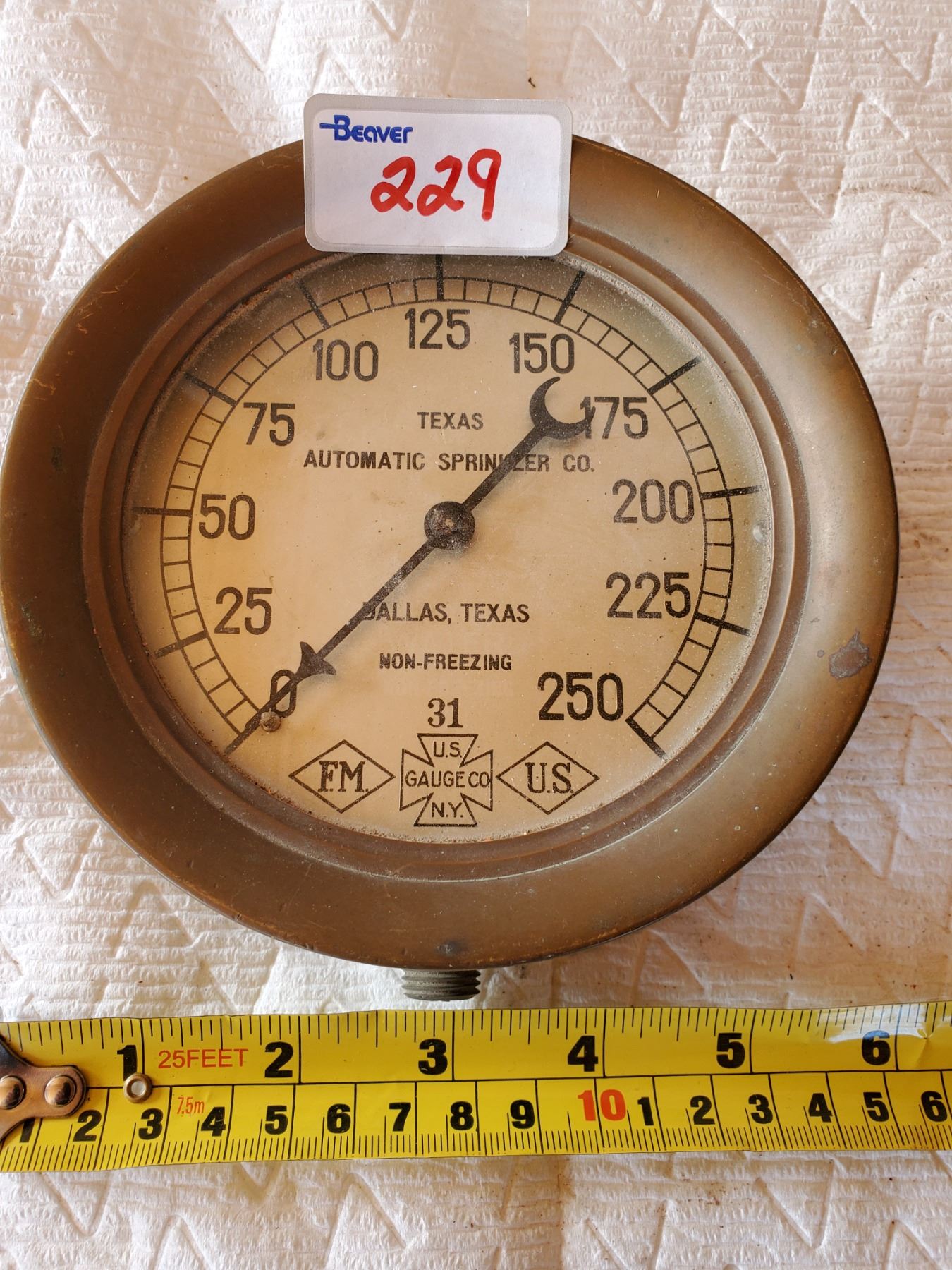 6" BRASS GUAGE- TEXAS AUTOMATIC SPRINKLER COMPANY, EXCELLENT CONDITION