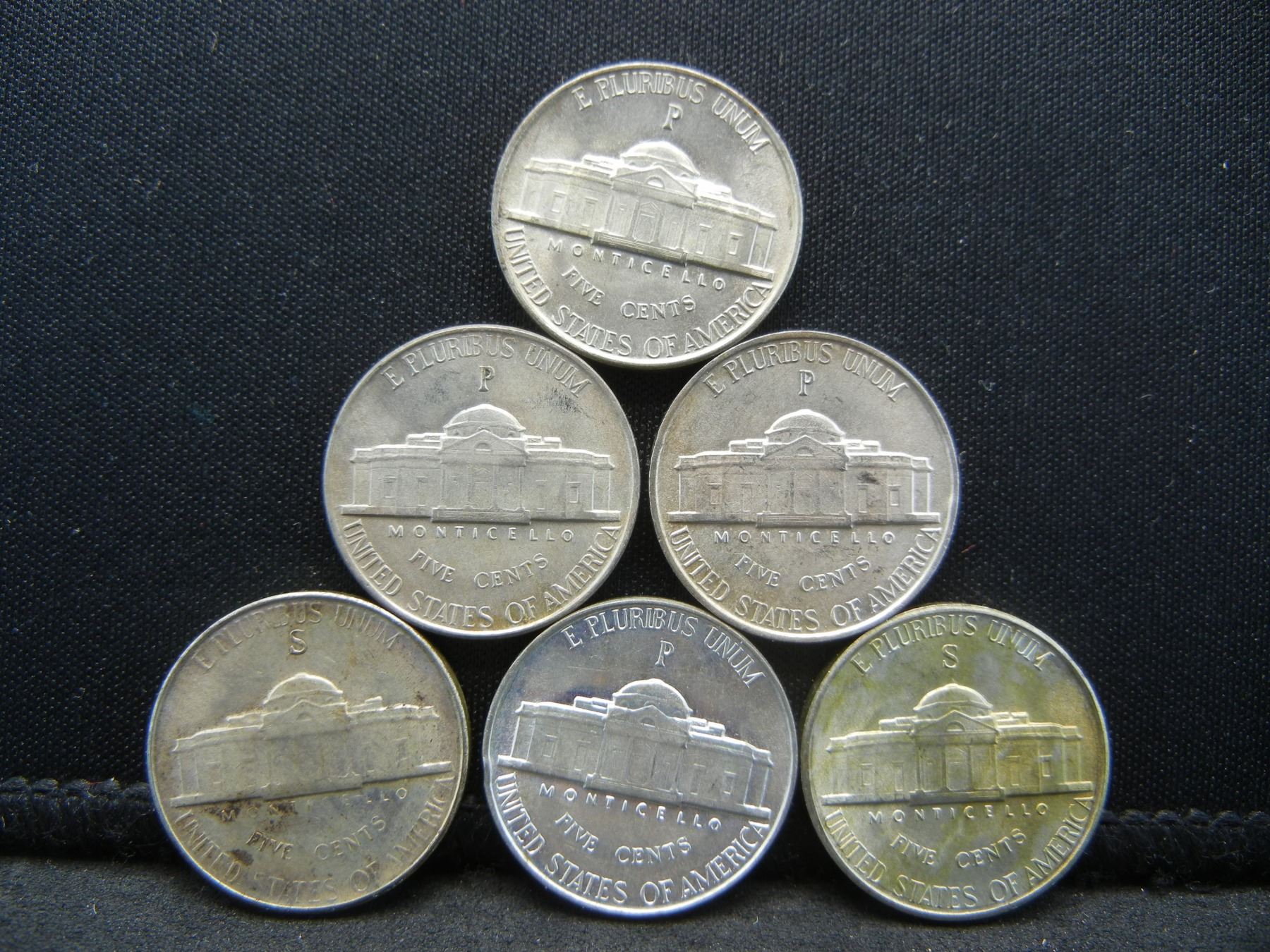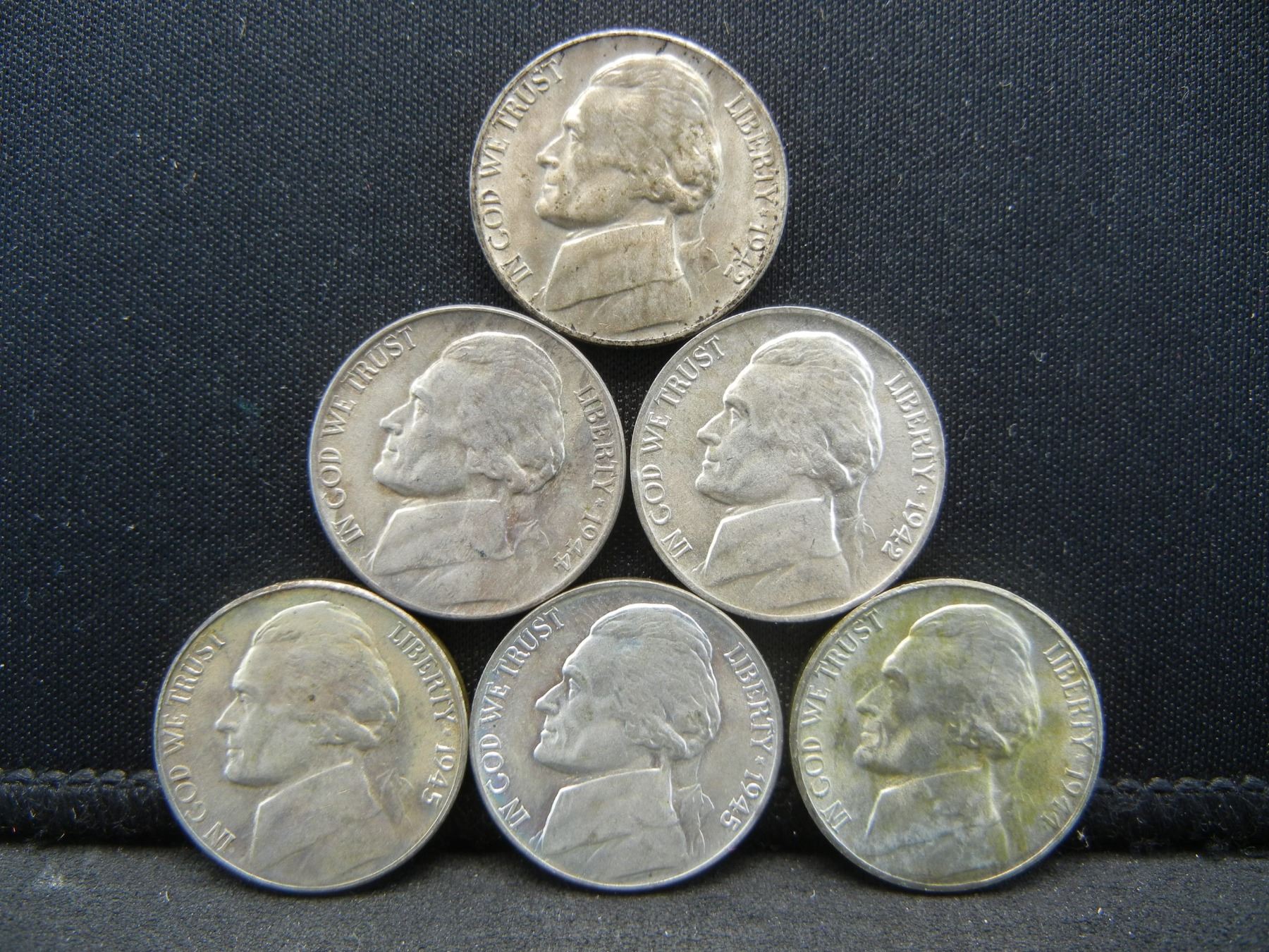(6) BU Silver War Nickels (2) 1942P, 44P, 44S, 45P, 45S