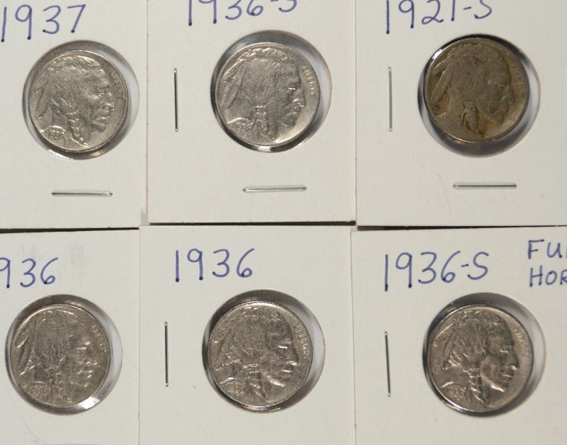 6-BUFFALO NICKELS (1921-S, 2-1936, 2-1936-S, 1937)