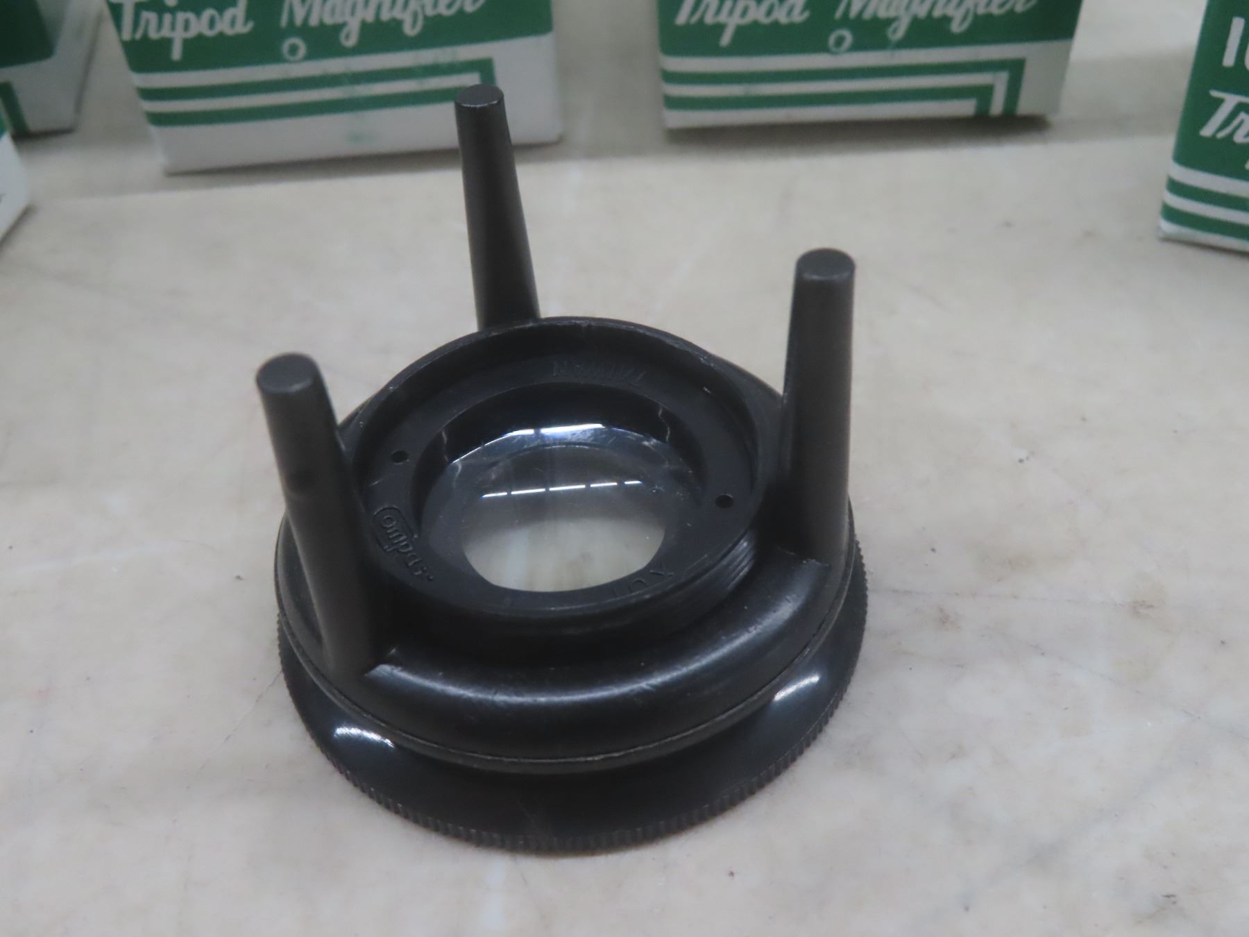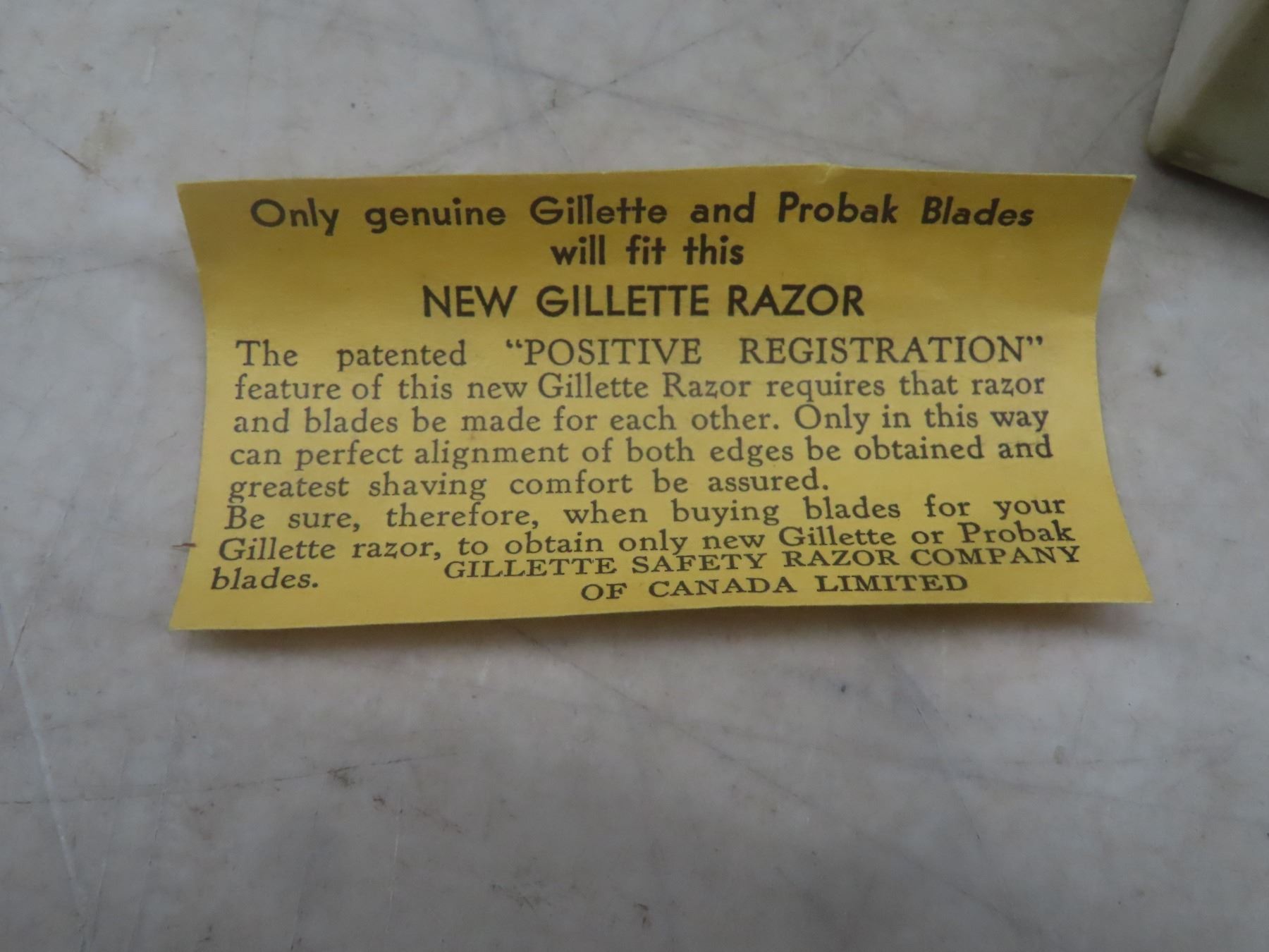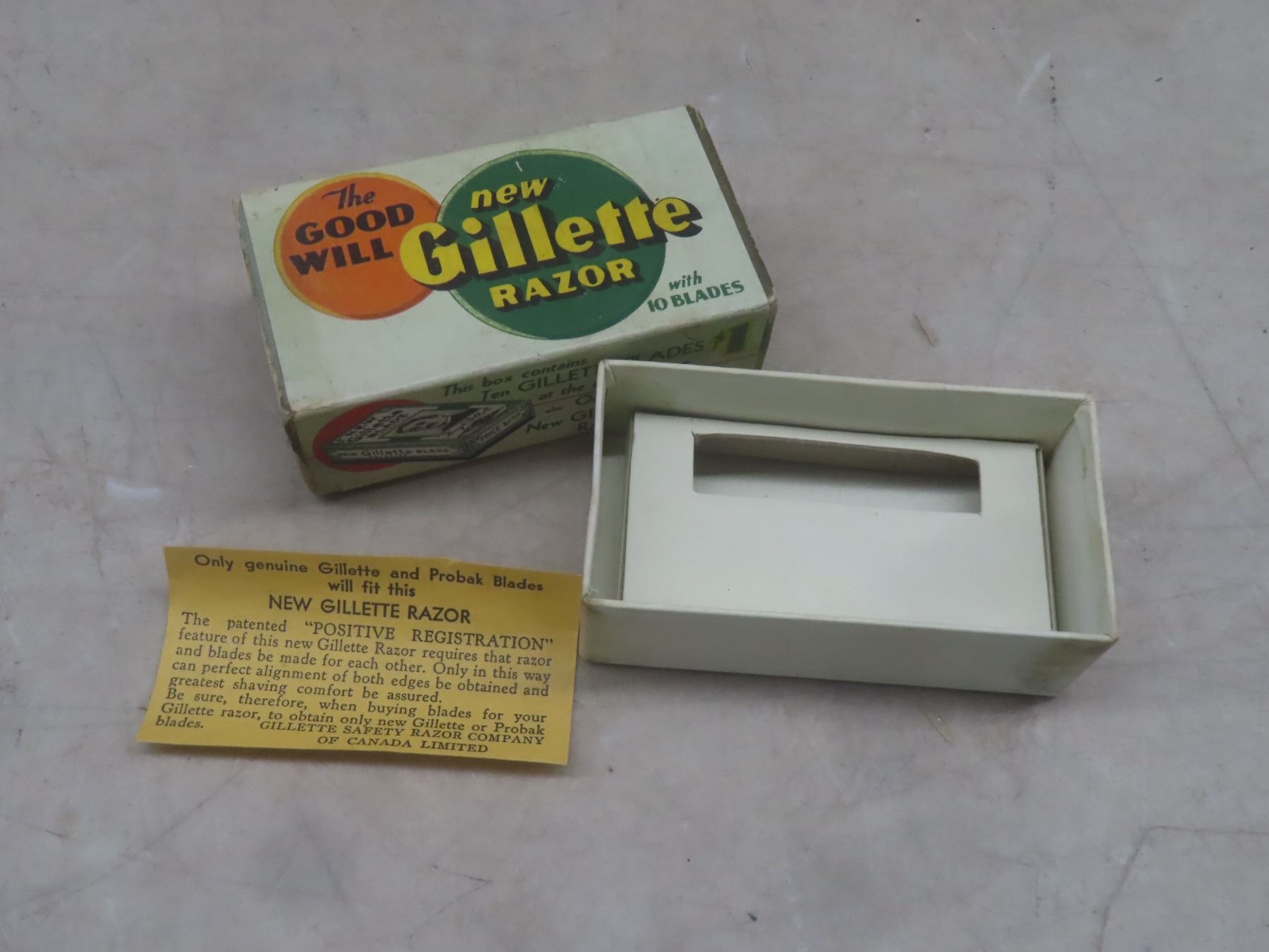6 Bakelite Compass, 10x Tripod Magnifier, Wood Case, Gillette Razor Box Only, 3 Exit/Open Decals