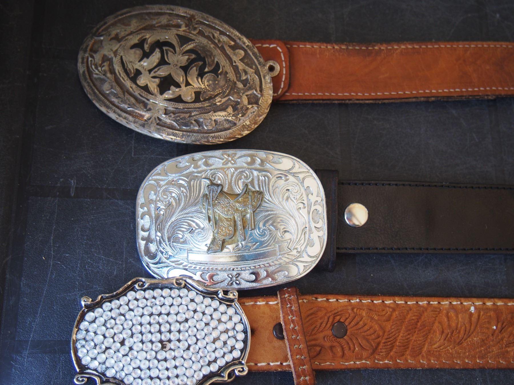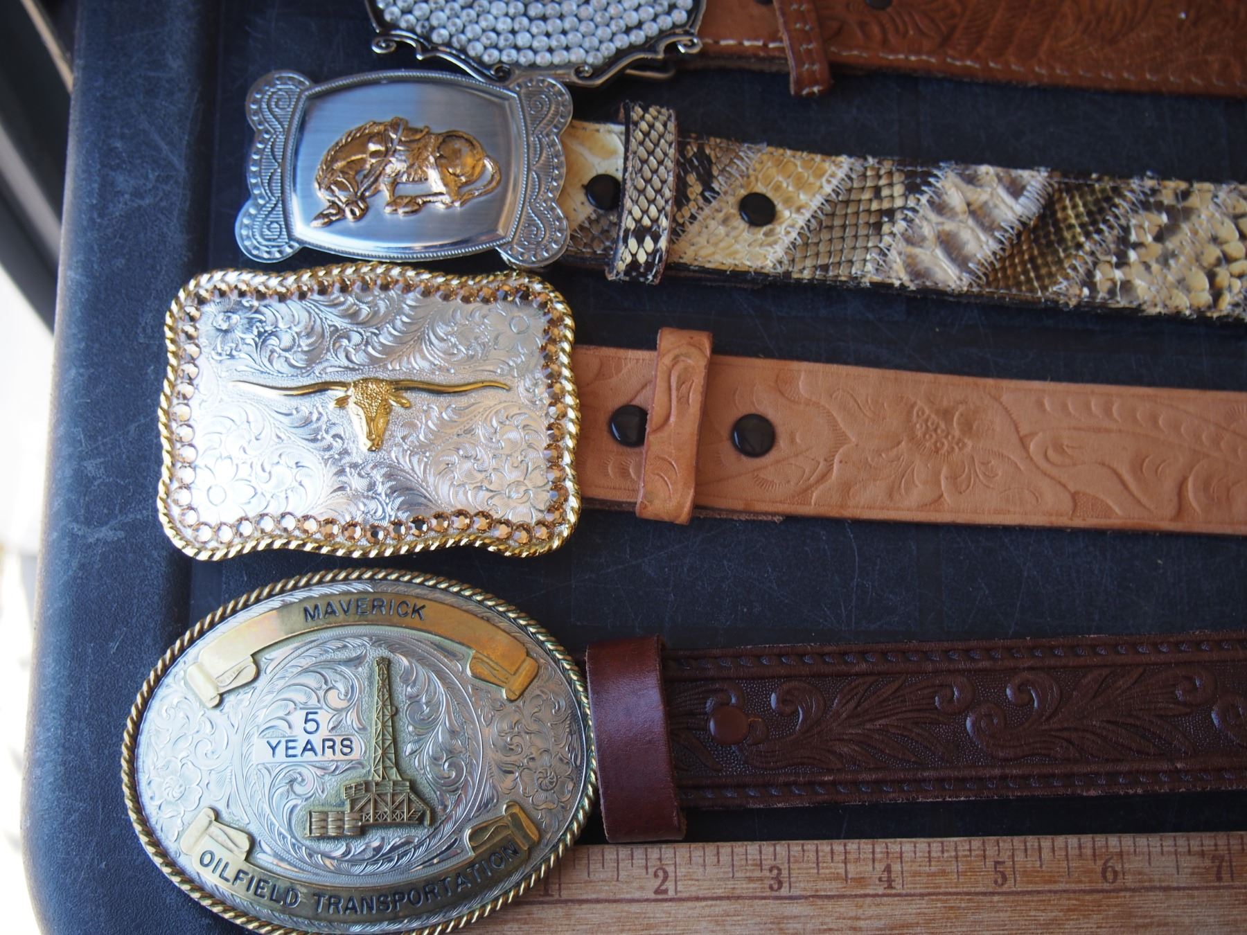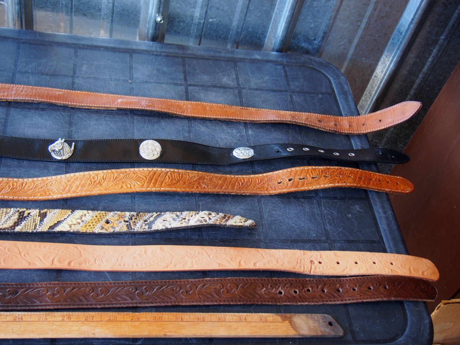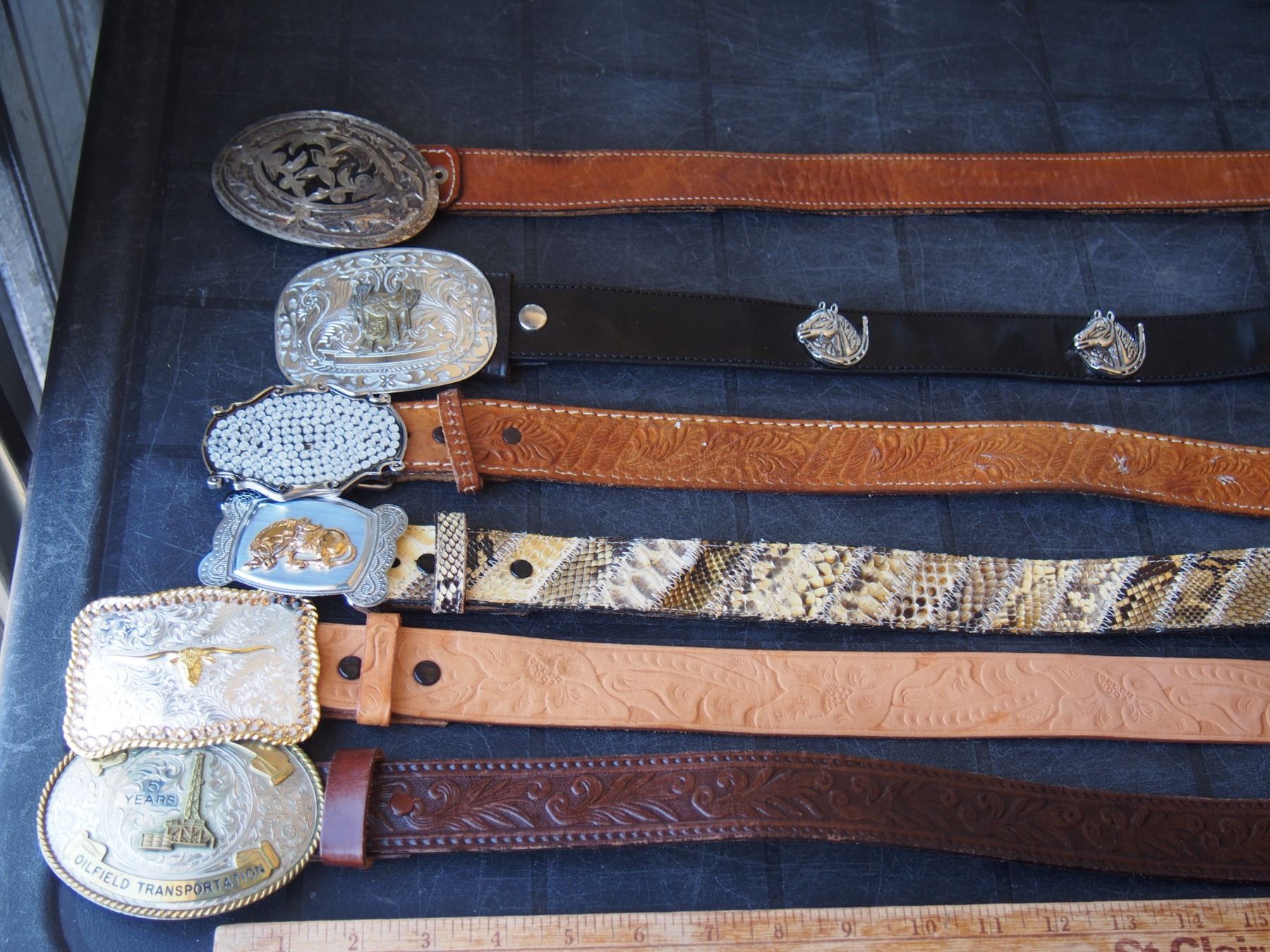 6 Belt Buckles with Belts (Misc Lengths) Size 40, 30
