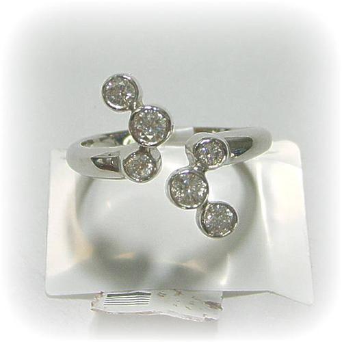 This 1/2 Carat Diamond Ring looks a lot like Tiffany's design. 6 "bubble set", genuine diamonds journey along her finger. Ring measure approx. 3/4 inch wide and is set in solid white gold. Stunning!<BR><BR>Size: 7.25 (will fit sizes 7 to 7.5 due to its open design)<BR><BR>Setting: Solid 10 Karat White Gold<BR><BR>Gems: Genuine Diamonds<BR><BR>Diamond Carat Weight: .53 Carat<BR><BR>Diamond Clarity: I1/I2<BR><BR>Diamond Color: H-I<BR><BR>Gram Weight: 3.3 grams<BR><BR>Ring Width: 20mm<BR><BR>100% Satisfaction Guaranteed! If you don't LOVE your investment, simply return it for a full refund of your purchase price, less shipping and handling charges.