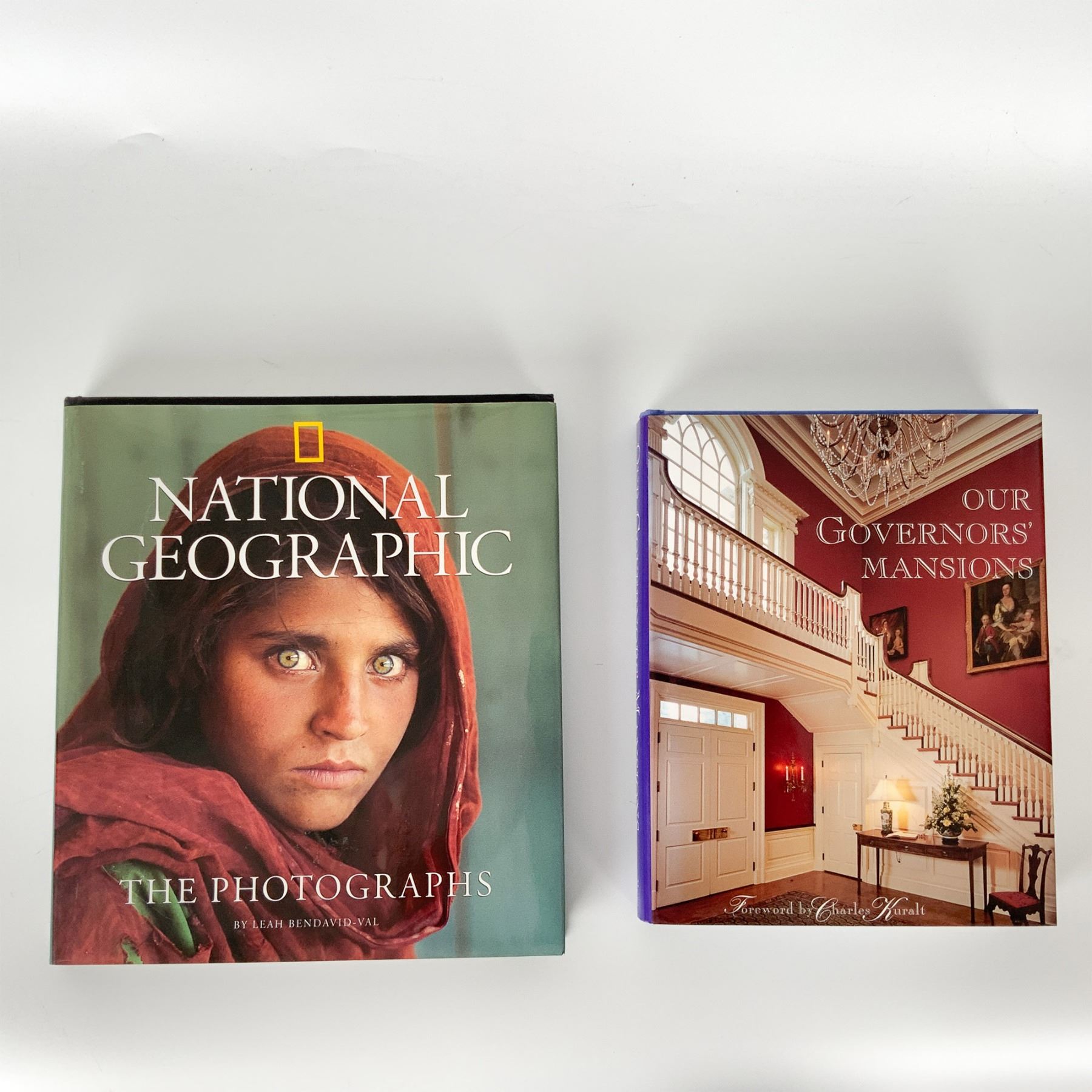 Collection of six hardcover books covering architecture, photography, and history. Included are Flophouse: Life on the Bowery by David Isay and Stacy Abramson, a photographic and narrative exploration of life on the margins; Fifth Avenue: The Best Address by Jerry E. Patterson, which chronicles the history and significance of New York City's prestigious avenue; Harbor & Haven: An Architectural History of Bunker by Windsor, an insightful look into maritime and harbor architecture; Our Governors' Mansions by Abram, a detailed account of historical residences of U.S. state governors; Public & Private: Twenty Years Photographing the Presidency by Diana Walker, a behind-the-scenes photographic journey of American presidents; and National Geographic: The Photographs, a stunning visual compilation from National Geographic's archives showcasing some of the most iconic images captured by their photographers. These books collectively offer a rich perspective on urban history, political spaces, and photography.