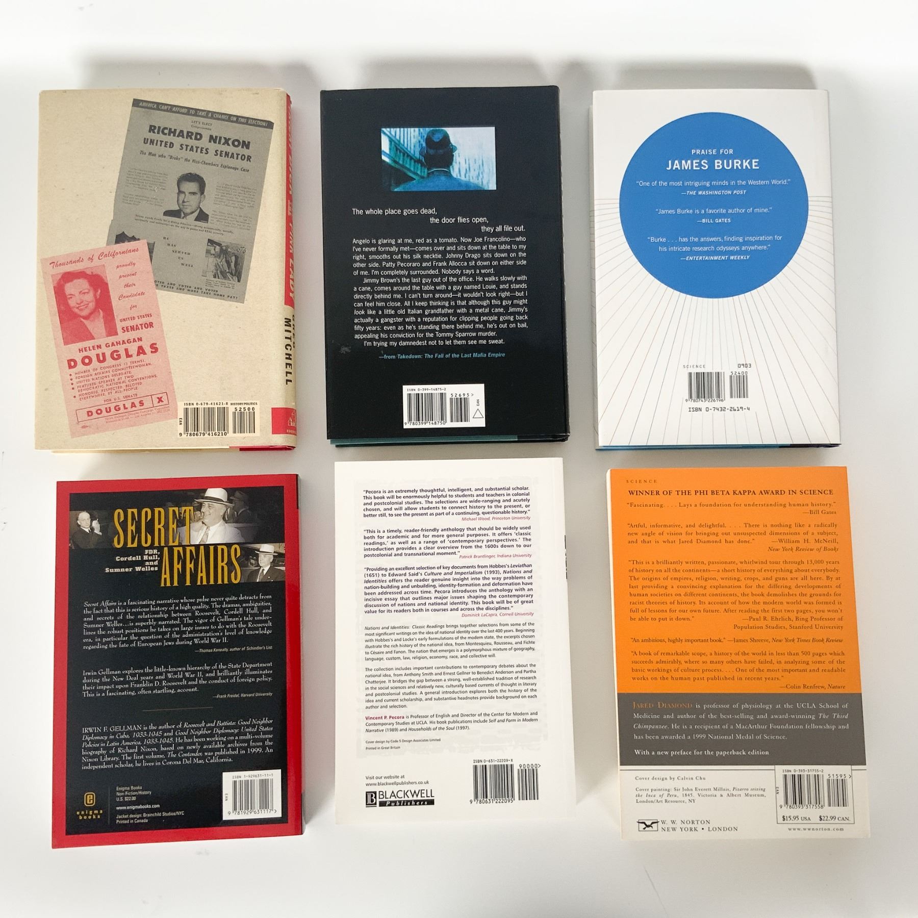 This collection of six books covers a range of historical, political, and societal topics, offering insightful perspectives on key events and figures. Included are Tricky Dick and the Pink Lady by Greg Mitchell, exploring the 1950 U.S. Senate race between Richard Nixon and Helen Gahagan Douglas; Twin Tracks by James Burke, a fascinating study of interconnected scientific discoveries; Secret Affairs: FDR, Cordell Hull, and Sumner Welles, which delves into political intrigue during Franklin D. Roosevelt's administration; Takedown: The Fall of the Last Mafia Empire by Cowan & Century, detailing law enforcement's efforts against organized crime; Guns, Germs, and Steel by Jared Diamond, a Pulitzer Prize-winning analysis of the factors shaping human civilization; Nations and Identities, a scholarly work edited by Pecora examining nationalism and identity formation. These books provide engaging and thought-provoking discussions on power, influence, and societal evolution.