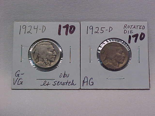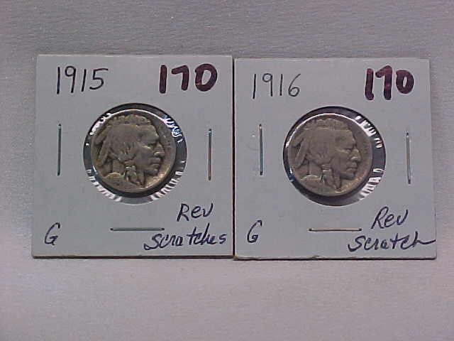 6 Buffalo Nickels: 1915 G rev scratches, 16 G rev scratches, 24D G-VG obv lt scratch, 25D AG rotated, 27 VF, 36 Nice AU