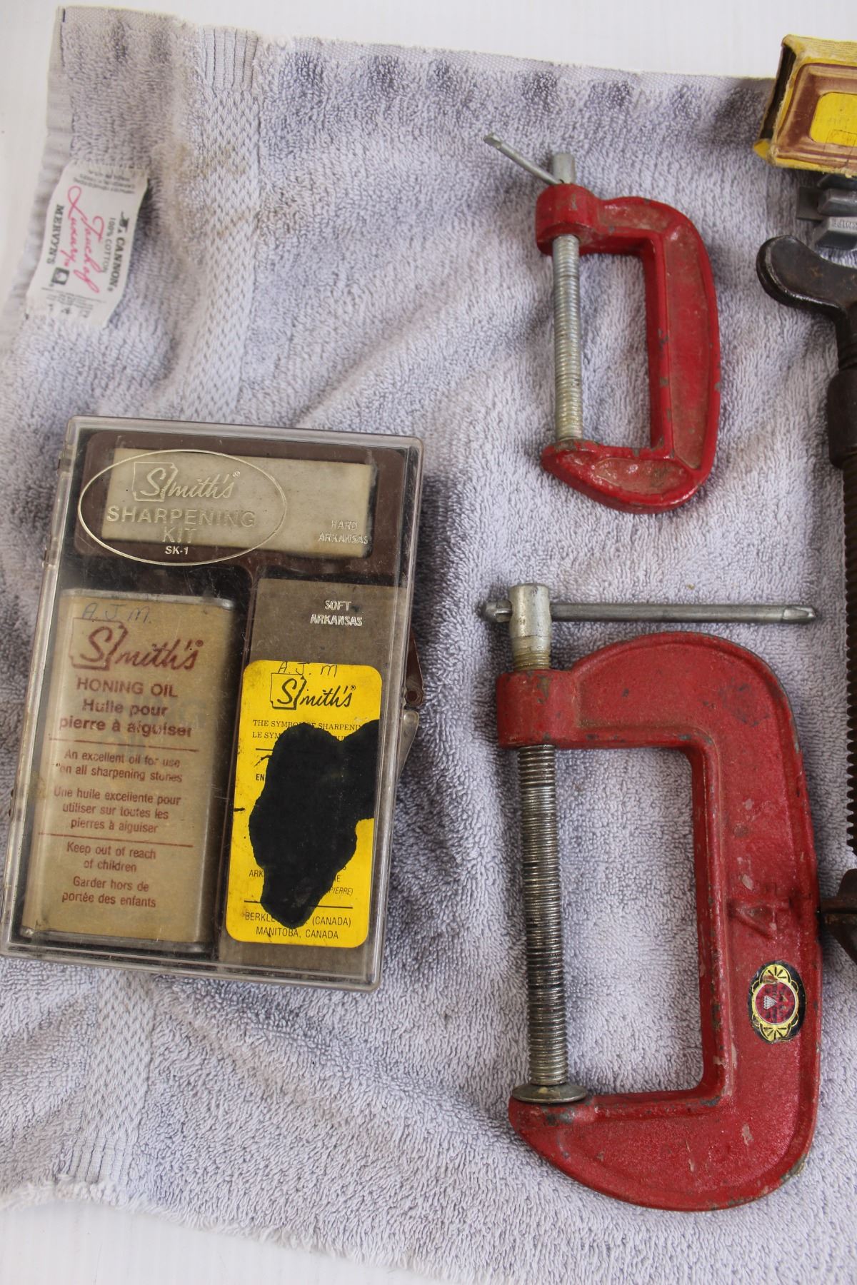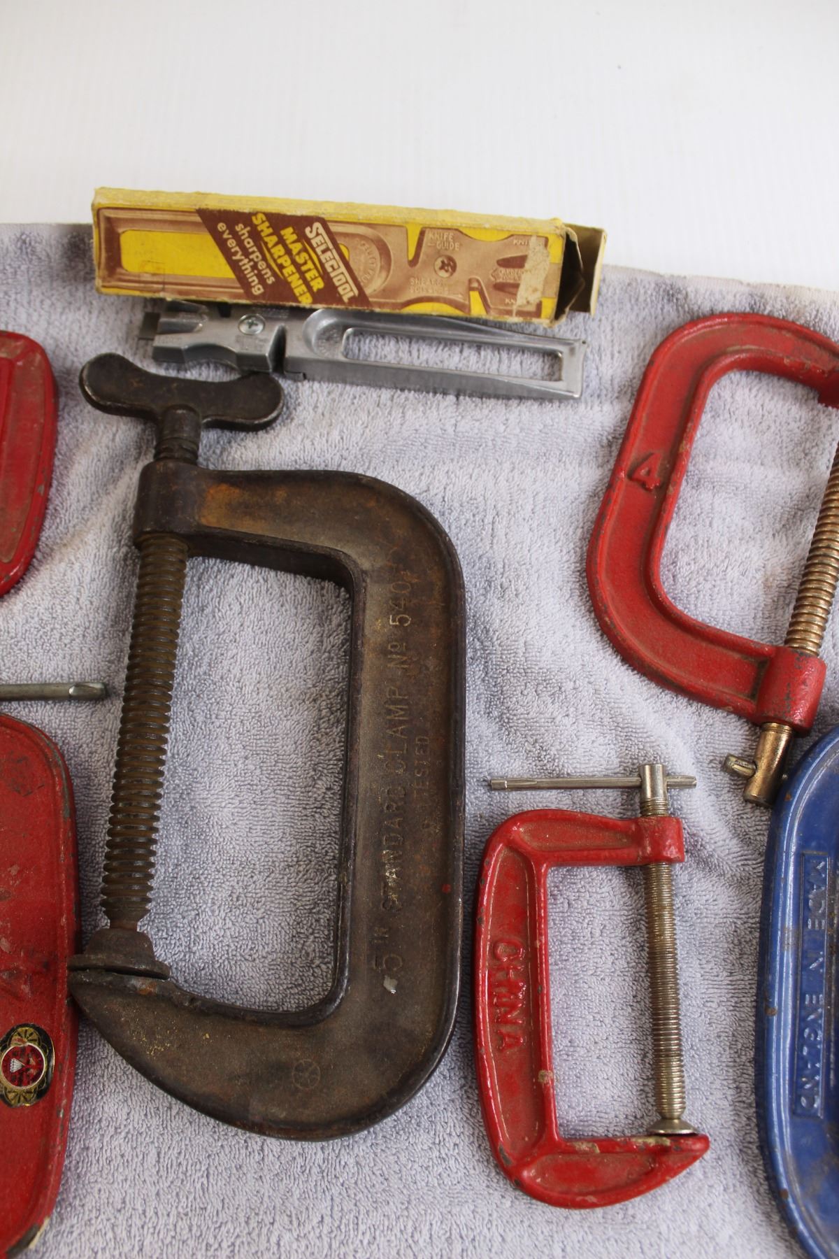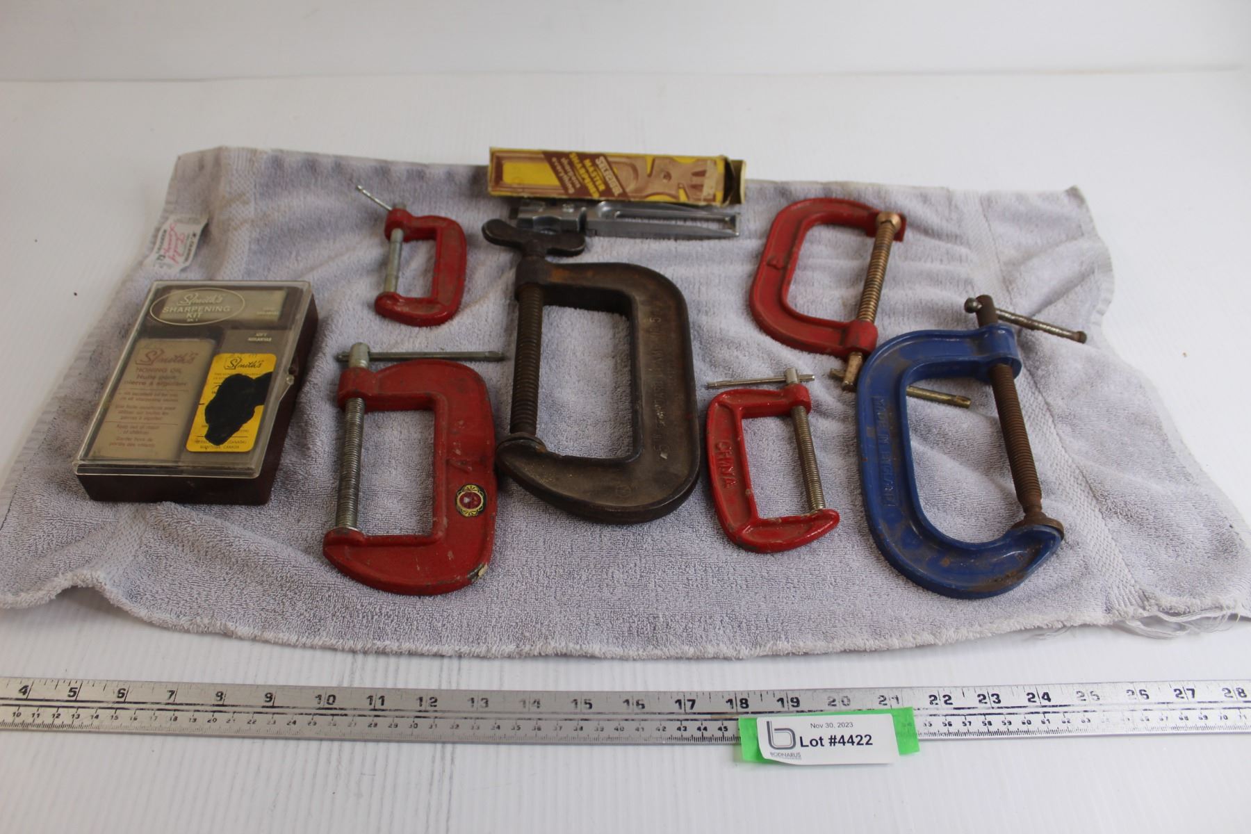 (6) C-Clamps, Smith's Sharpening Kit, SelecTool Master Sharpener