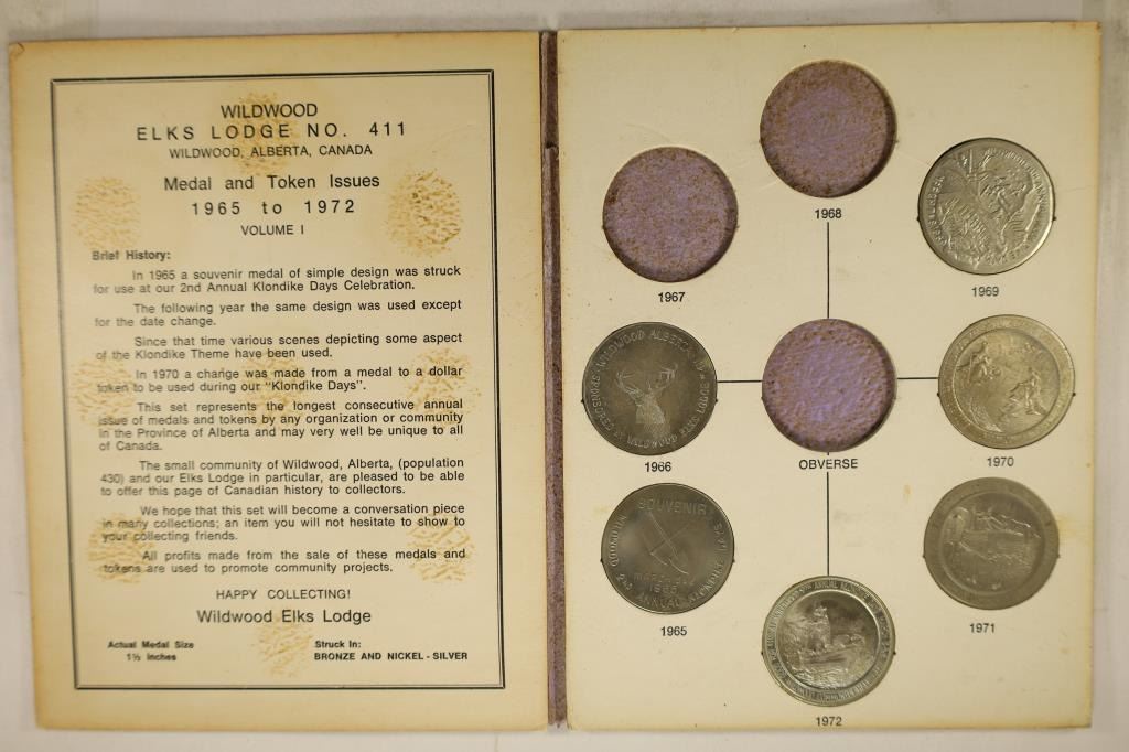 411 ANNUAL KLONDIKE DAYS FOLIO. INCLUDES MEDALS FROM 1965, 1966, 1969, 1970, 1971 AND 1972. EACH MEDAL IS 1 1/2"