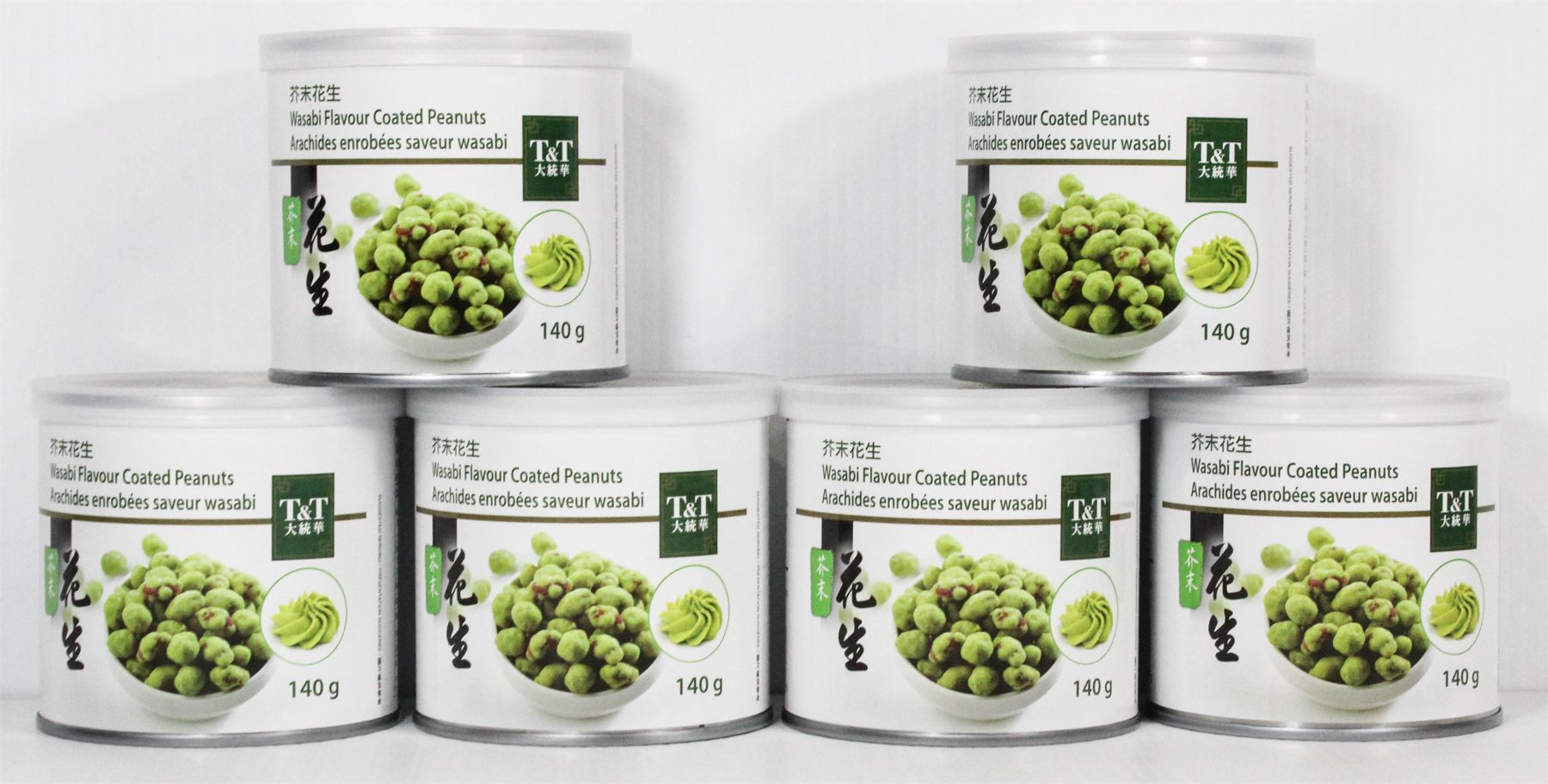 6 CANS OF T&T WASABI FLAVOUR COATED PEANUTS