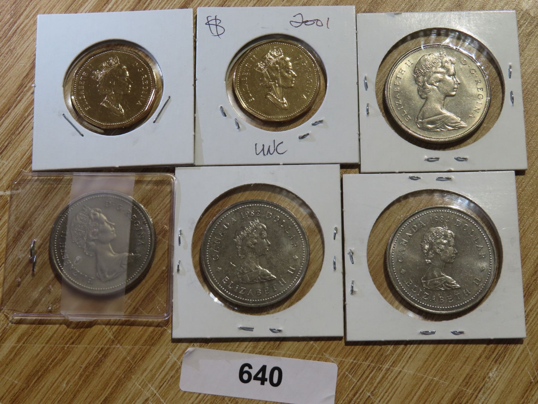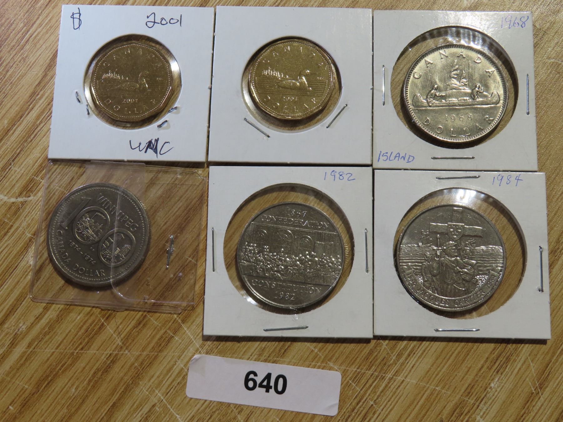 6- CDN MISC CDN DOLLARS 2- 2001 LOONIES,1968,70,82,84 AU-UNC