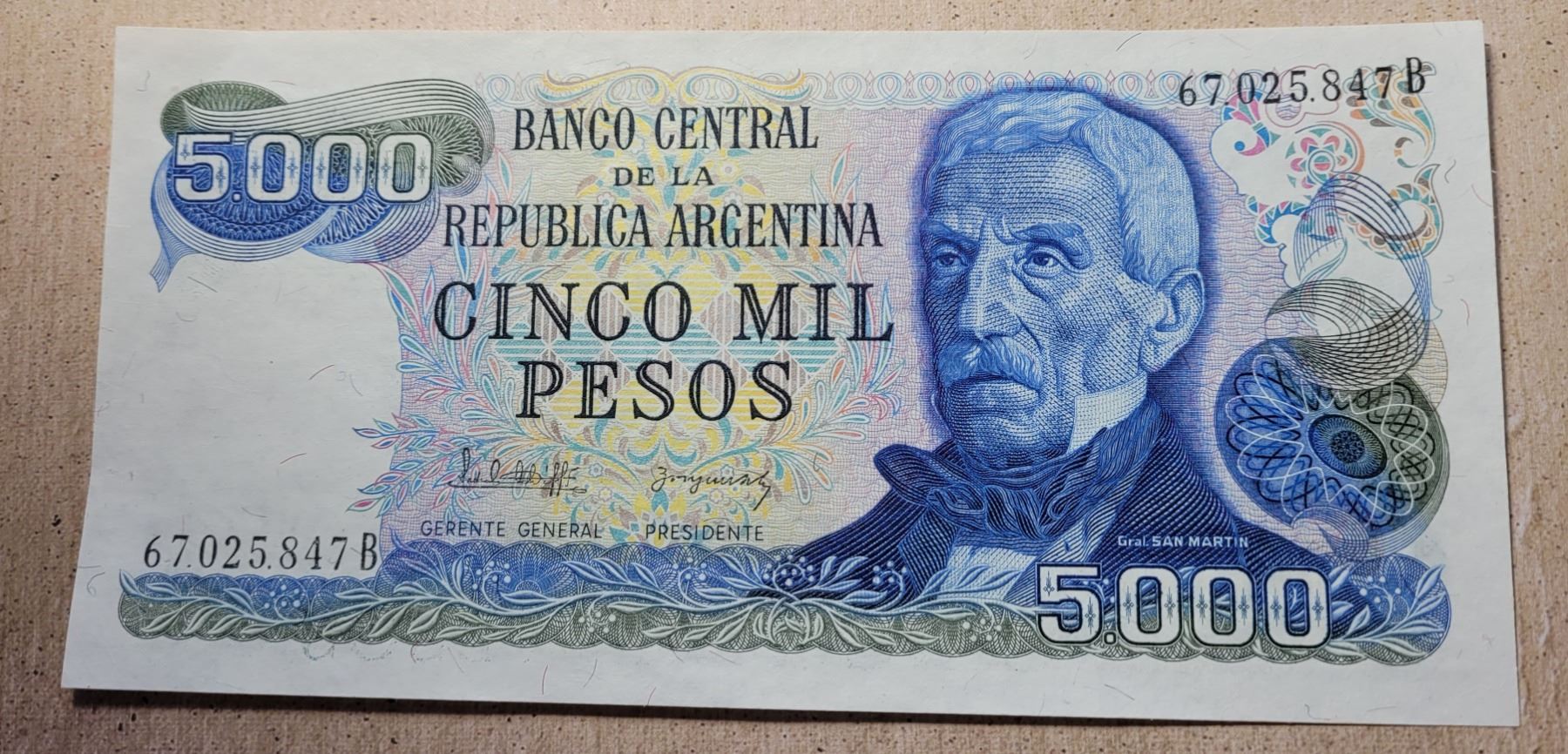6) CENTRAL BANK OF CHILE 5000 PESOS BANKNOTE.