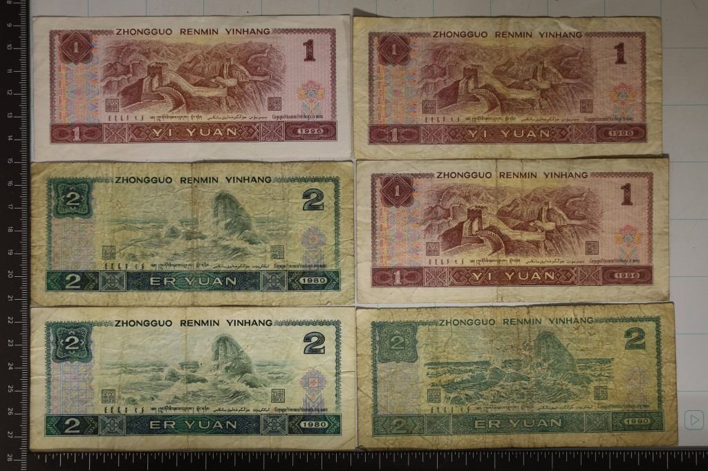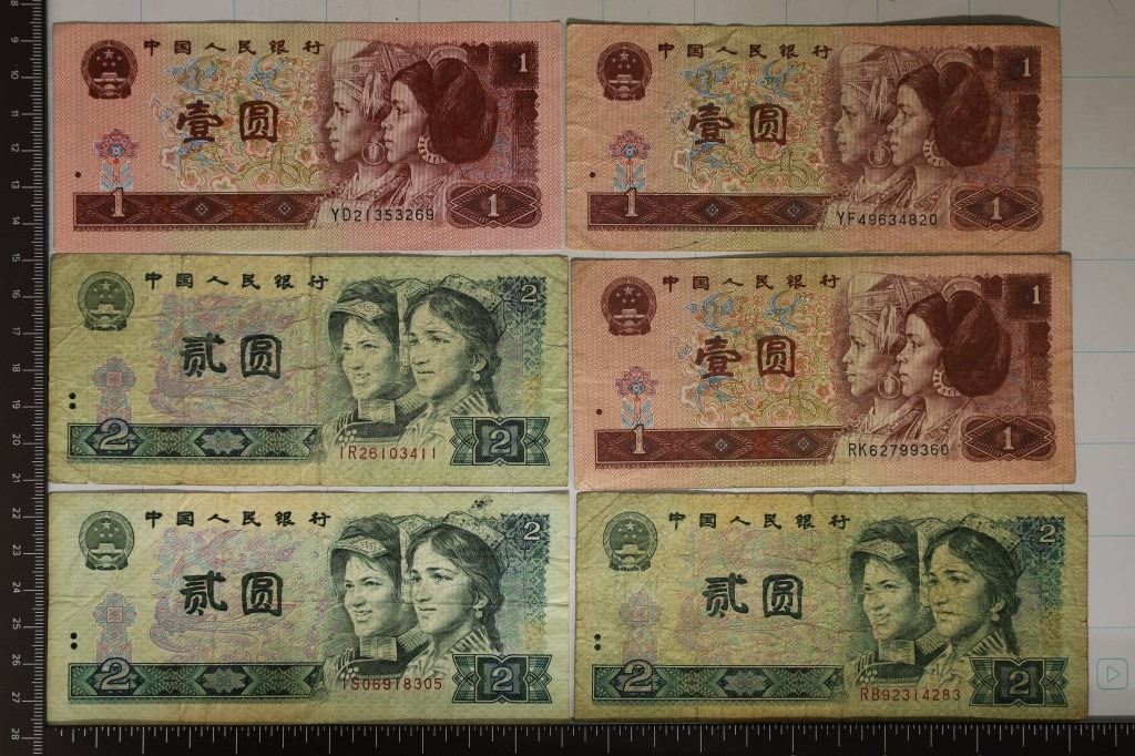 1-1990 TWO YUAN AND 3-1996 ONE YUAN