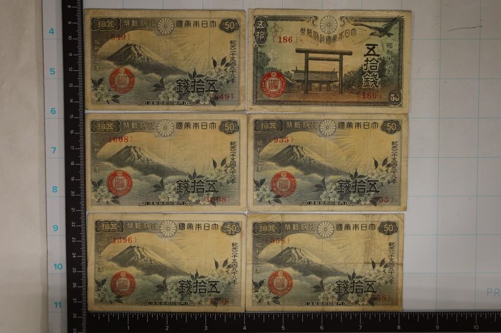 6-CIRCA 1938 JAPANESE 50 SEN BILLS
