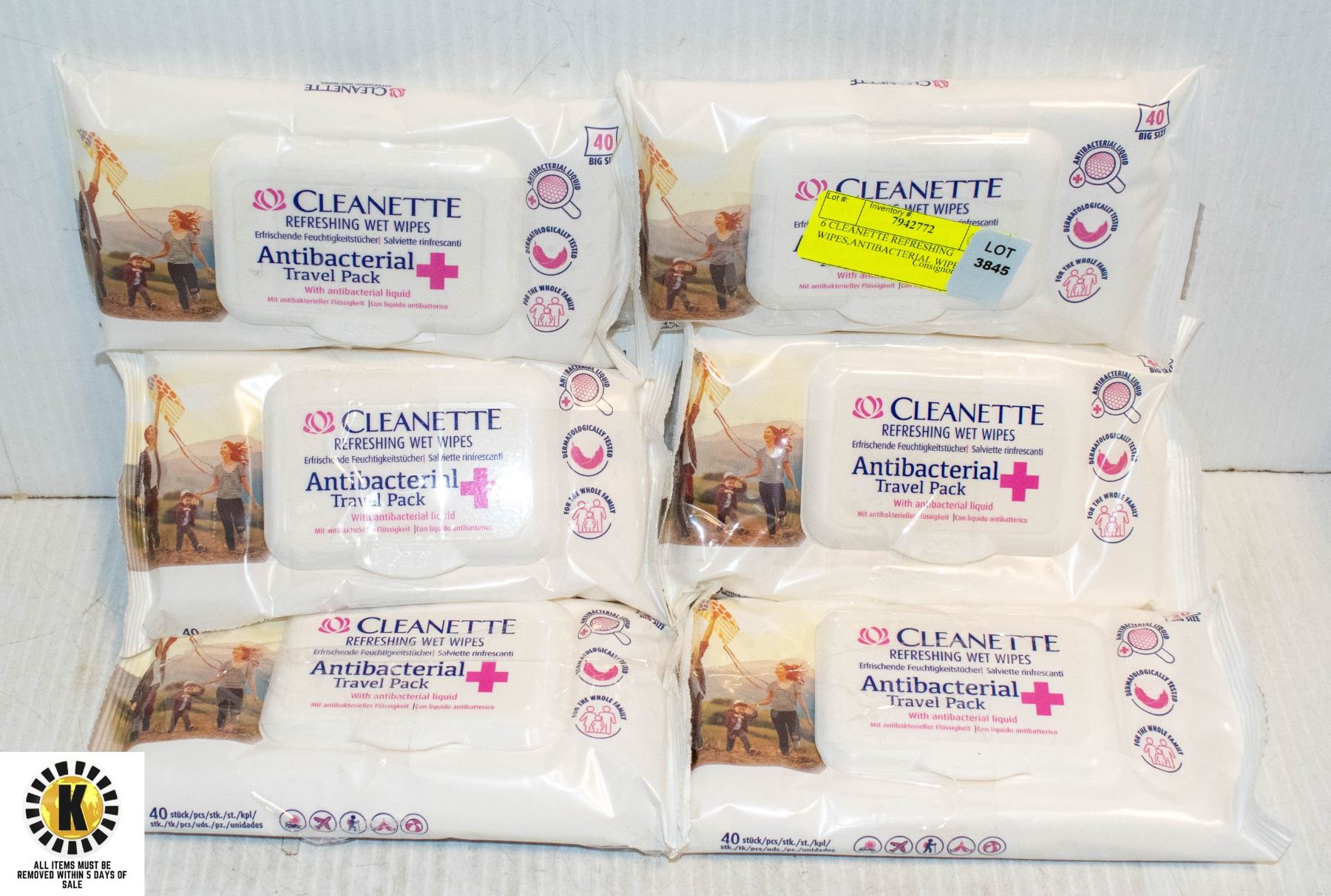 6 CLEANETTE REFRESHING WIPES,ANTIBACTERIAL WIPES