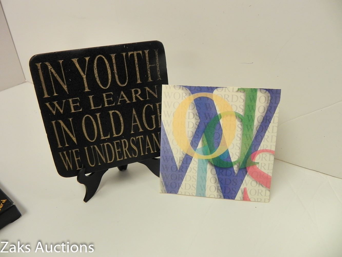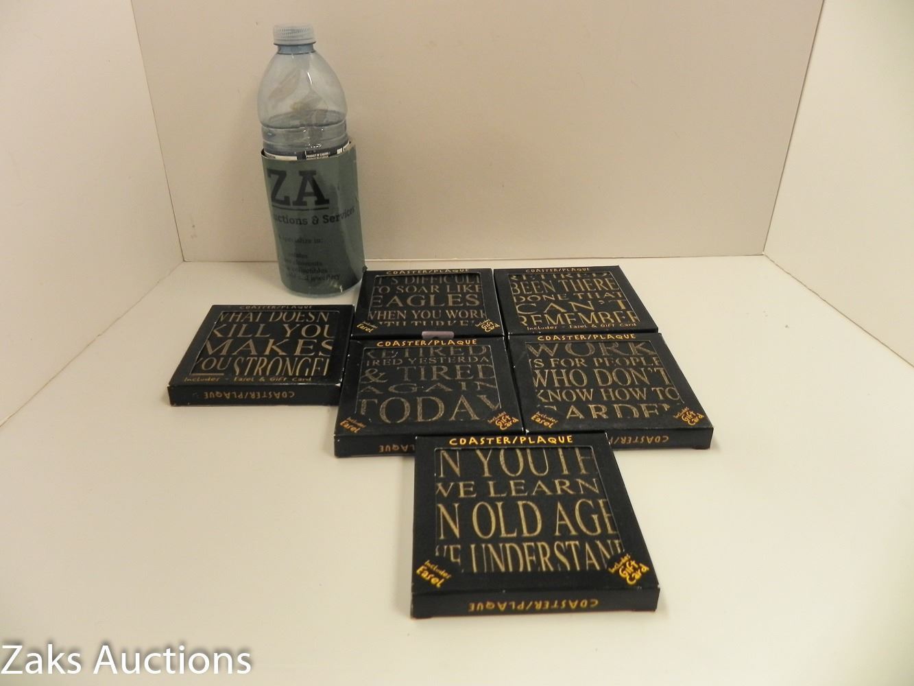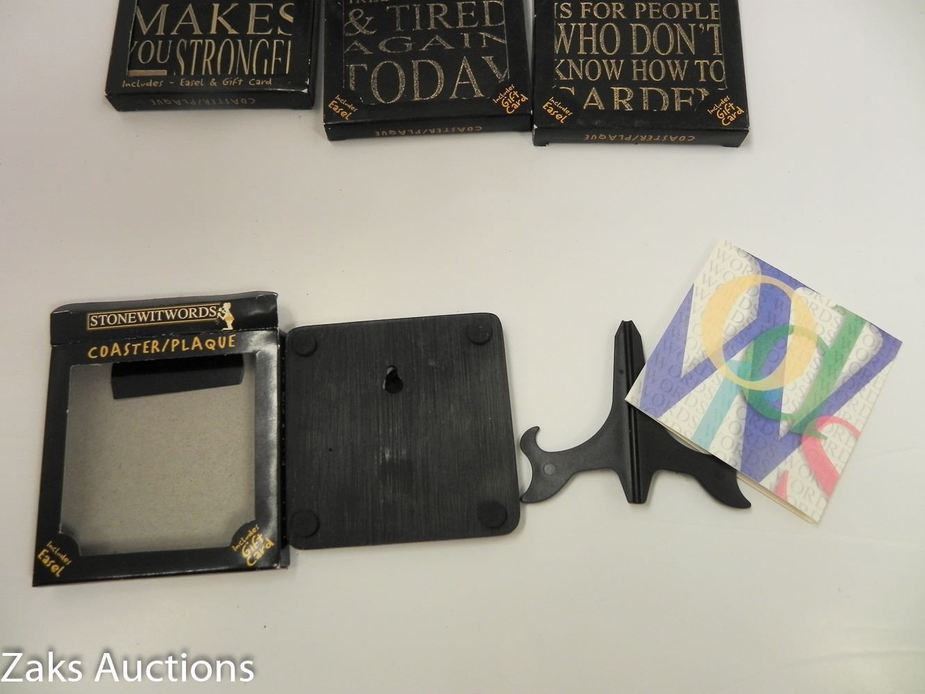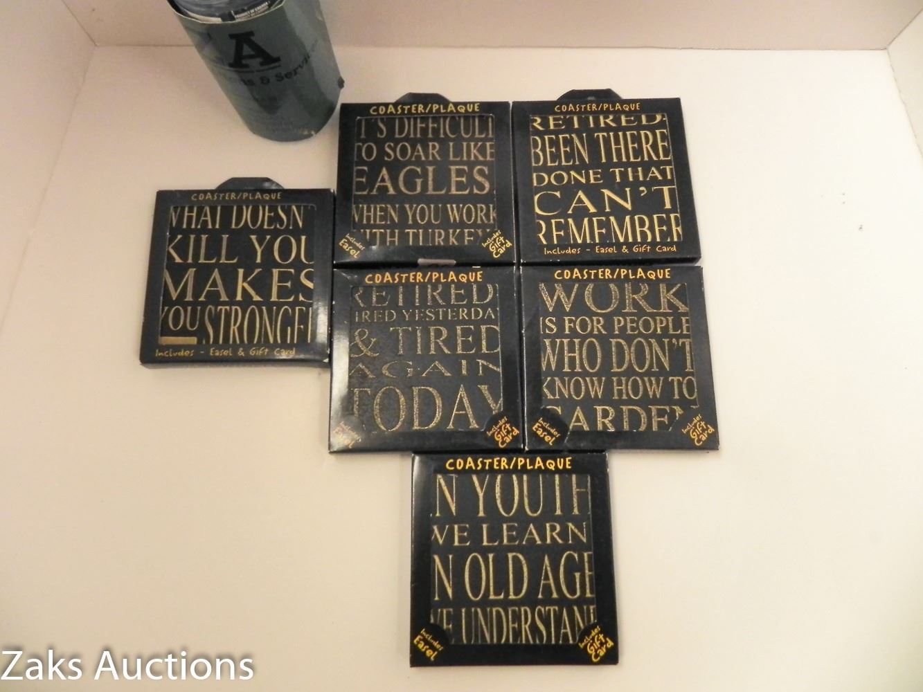 6 COASTERS WITH SAYING ALL HAVE EASELS
