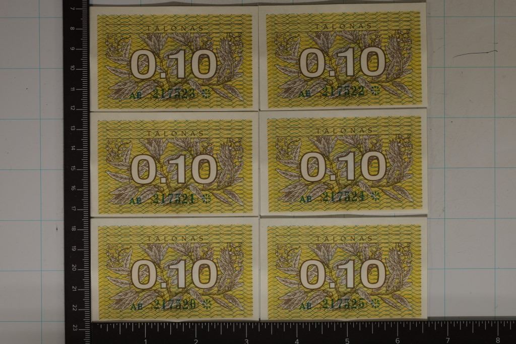 6-CRISP UNC 1991 LITHUANIA .10 TALONA BILLS