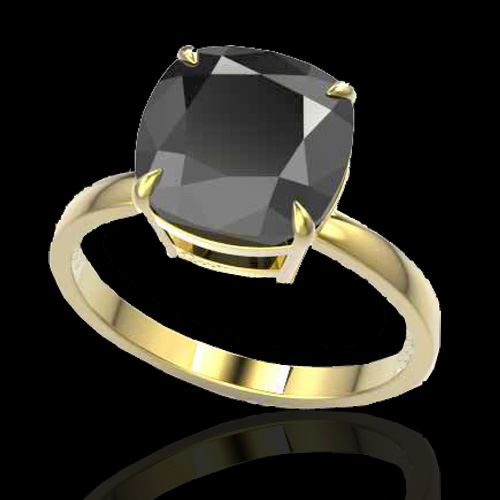 REF-155F6N -22176 ---- 6 CTW Black VS/SI Diamond Designer Inspired Engagement Ring 18K Yellow Gold ---- Luxury Designer Brand Ring Appraised at $9,400 Certificate Number US22176 18k Yellow gold, Ring Size is 7, Ring measuring approx. 12 mm x 12 mm, weighing in total approx. 6 grams. Made in the USA and is stamped 18k, Main stone 6 carat total weight containing 1 pieces of Black Opaque color with VS quality Cushion shape cut Diamond , Stone #2 carat total weight containing pieces of color with quality shape cut