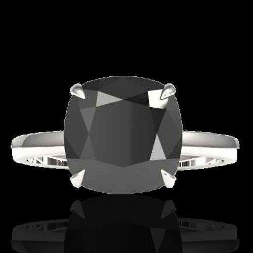 6 CTW Black VS/SI Diamond Designer Inspired Engagement Rng 18K White Gold ---- Luxury Designer Brand Ring Appraised Retail Price at $9,400 ---- SKU Number US22175 18k White gold Ring Size is 7, Ring measuring approx. 12 mm x 12 mm, weighing in total approx. 6 grams. Made in the USA and is stamped 18k, Main stone 6.00 carat total weight containing 1 pieces of Black Opaque color with VS quality Cushion shape cut Diamond , Stone #2 carat total weight containing pieces of color with quality shape cut