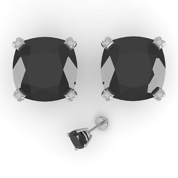 REF-140W4F -38392 ---- 6 CTW Cushion Black Diamond Stud Designer Earrings 14K White Gold ---- Luxury Designer Brand Earring Appraised at $8,500 Certificate Number US38392 14k White gold, Earring Size is Larger, Earring measuring approx. Uniform, weighing in total approx. 3 grams. Made in the USA and is stamped 14k, Main stone 6 carat total weight containing 2 pieces of Black Opaque color with VS quality Cushion shape cut Diamond , Stone #2 carat total weight containing pieces of color with quality shape cut