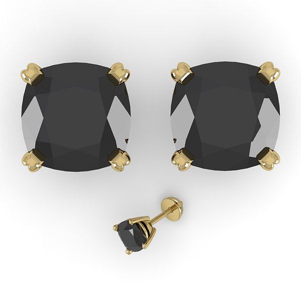 32329 - REF-146N9A ---- 6 CTW Cushion Black Diamond Stud Designer Earrings 18K Yellow Gold ---- Luxury Designer Brand Earring Appraised at $8,900 Certificate Number US32329 18k Yellow gold, Earring Size is Larger, Earring measuring approx. Uniform, weighing in total approx. 5.2 grams. Made in the USA and is stamped 18k, Main stone 6 carat total weight containing 2 pieces of Black Opaque color with VS quality Cushion shape cut Diamond , Stone #2 carat total weight containing pieces of color with quality shape cut